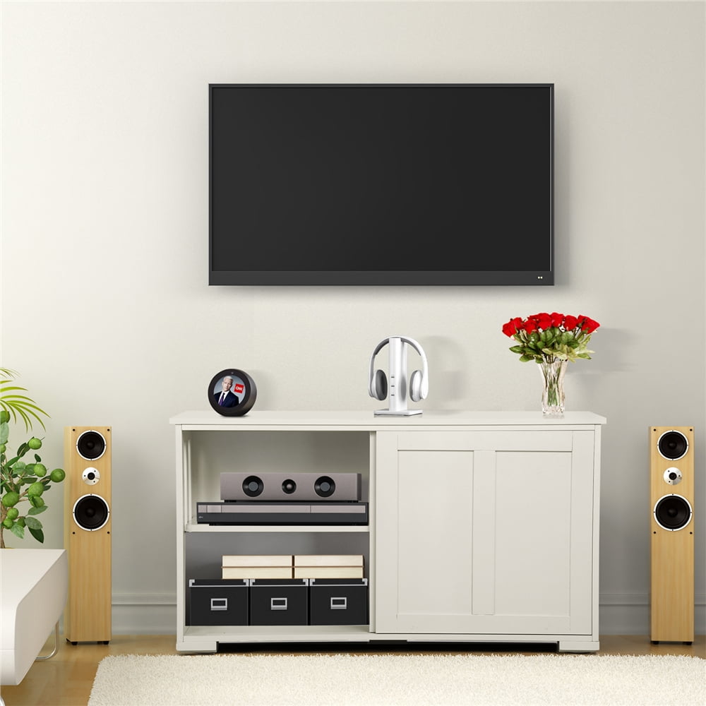 Easyfashion Antique Buffet Sideboard Kitchen Table with Sliding Door, White