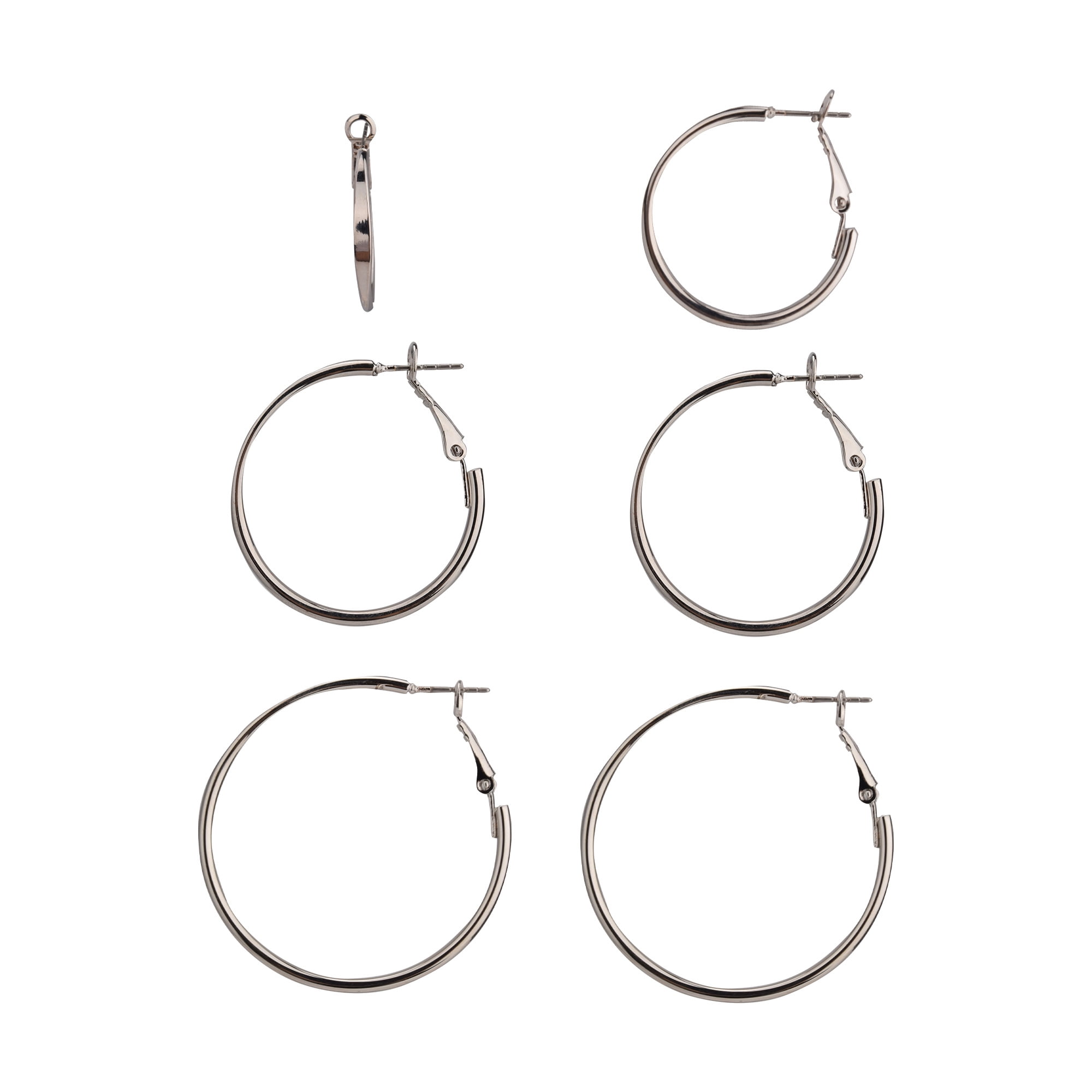 Clip-on Earrings 2 inch Hoop Swirl Hypoallergenic Silver Tone Hoops