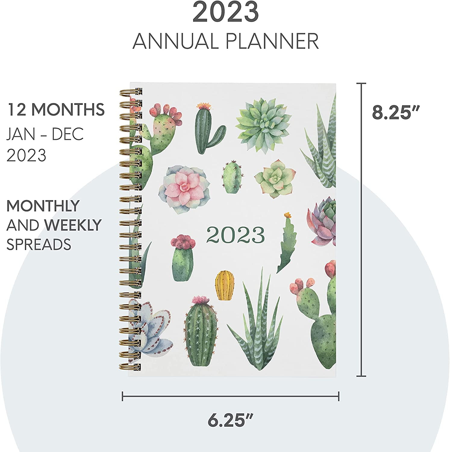2023 Succulents Annual Planner by Bright Day, Yearly Monthly Weekly Daily Spiral Bound Dated Agenda Flexible Cover Tabbed Notebook, 8.25 x 6.25