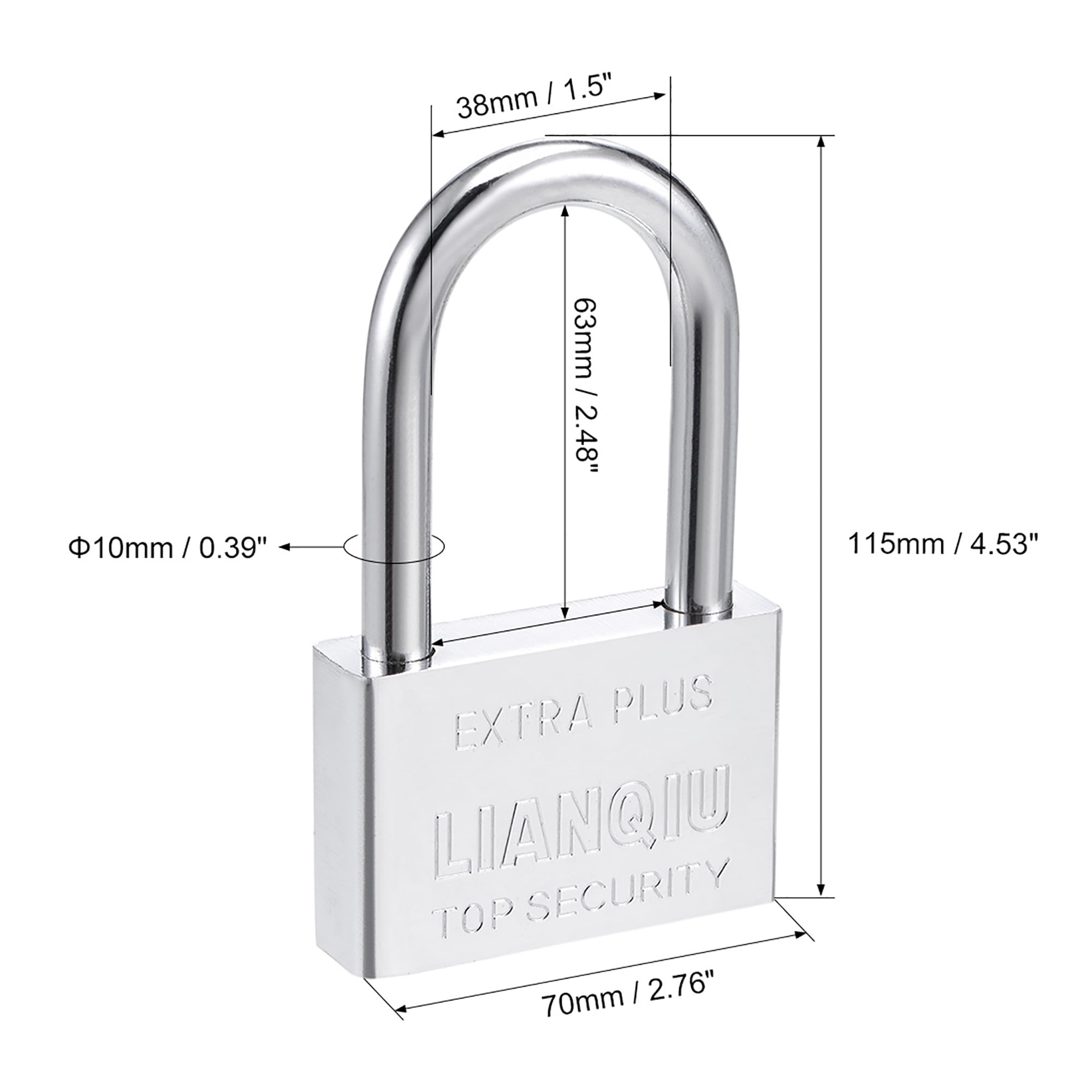 Uxcell 70mm Wide Keyed Alike Steel Padlock Chrome Finish Harden Long Shackle