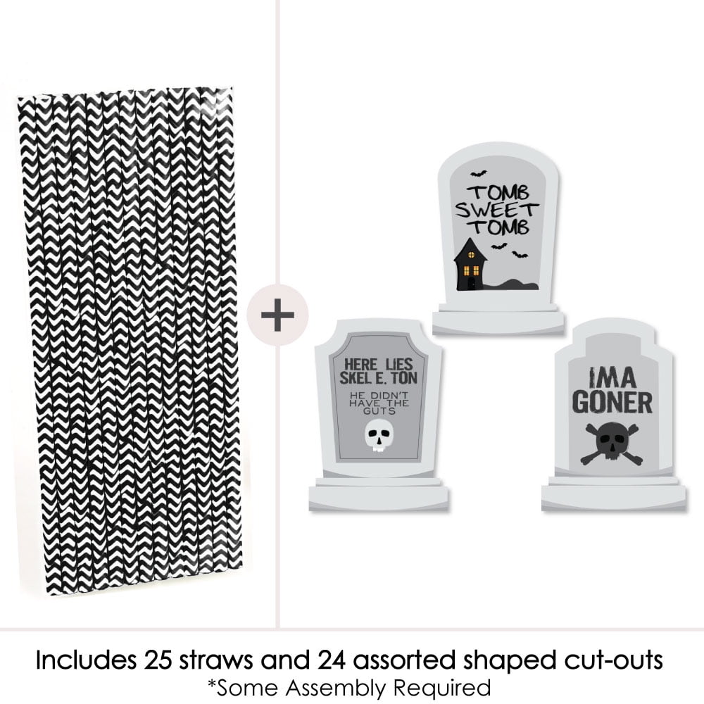 Graveyard Tombstones – Paper Straw Decor – Halloween Party Striped Decorative Straws – Set of 24
