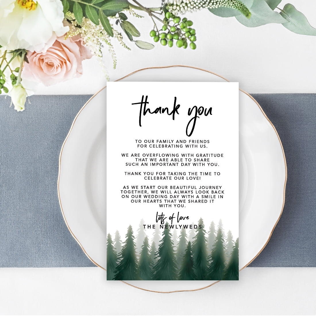 Andaz Press Watercolor Pine Trees Woodland Forest Wedding Thank You Place Setting Cards for Table Reception, 56-Pack