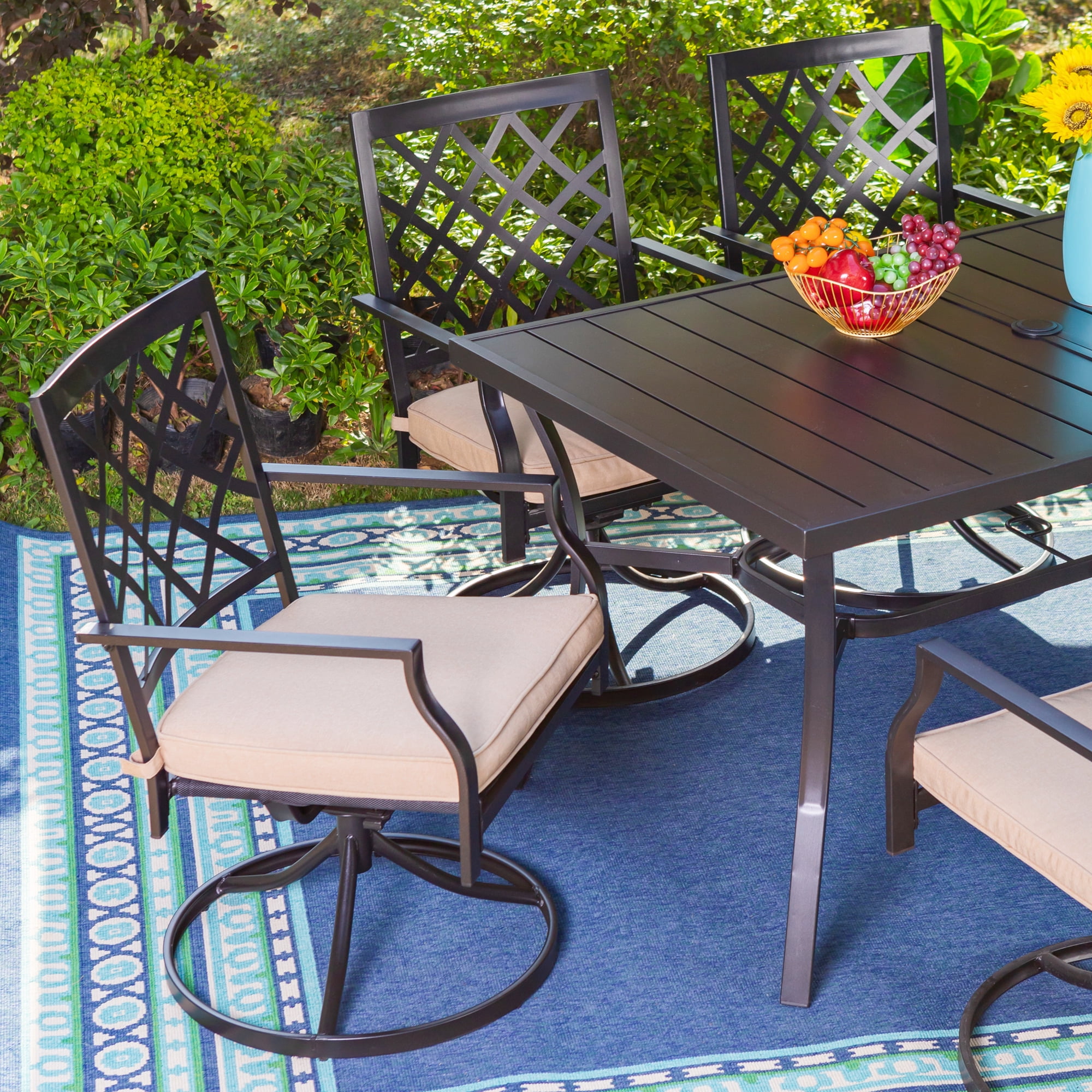 MF Studio 7 Pieces Patio Dining Set Metal Furniture Set with 6 Swivel Chairs and 1 Rectangular Table, Beige Cushion