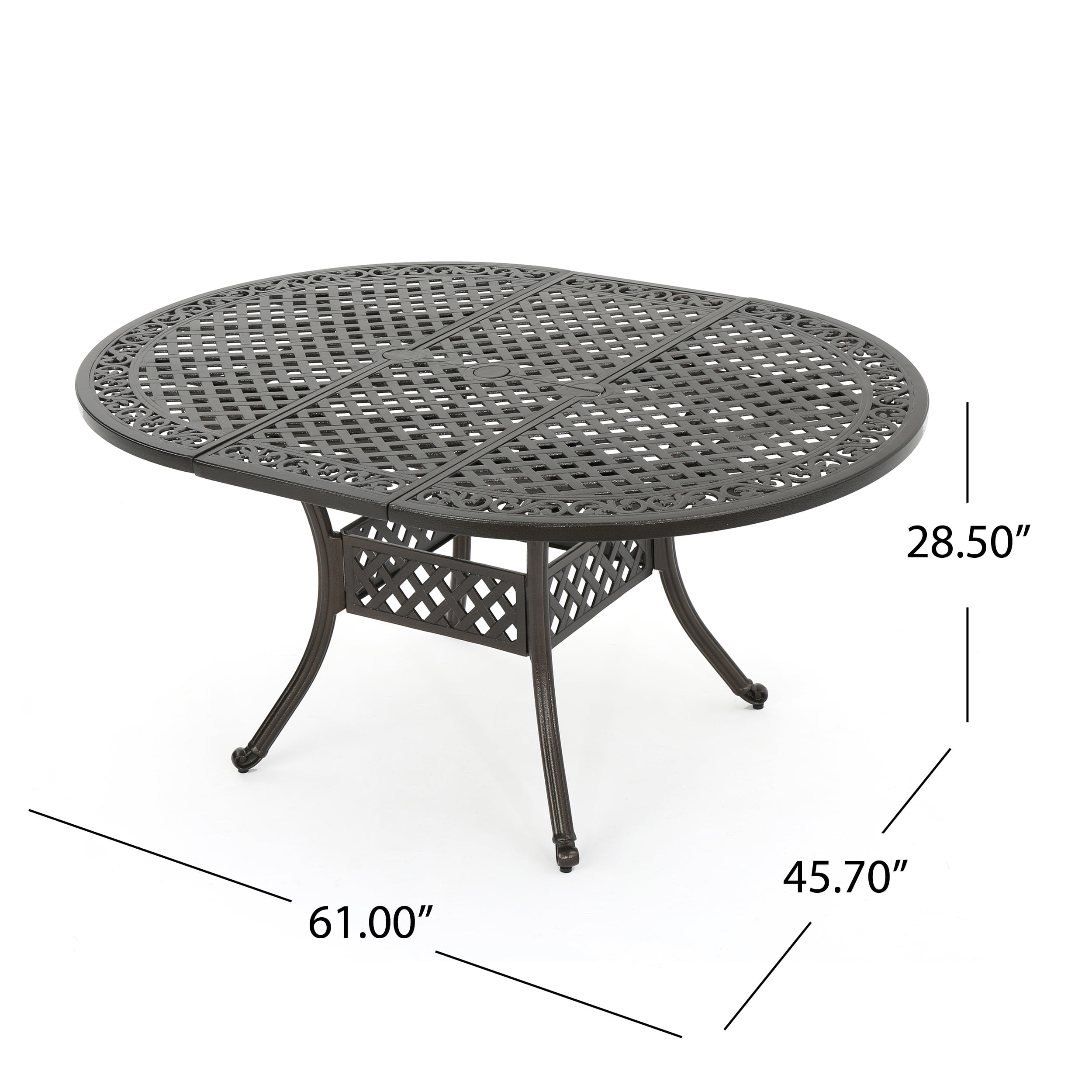 Andria Outdoor 7 Piece Aluminum Dining Set with Expandable Dining Table, Hammered Bronze