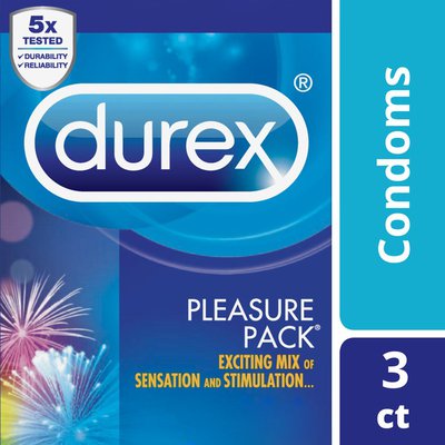 Durex Pleasure Pack, Assorted Lubricated Premium Condoms, 3 ct (Pack of 3)
