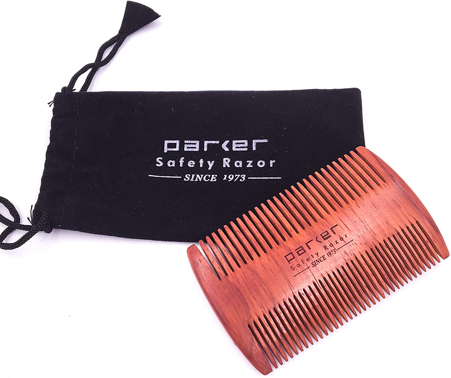 Premium Rosewood Two-Sided Beard & Mustache Comb with Deluxe Felt Case from Parker Safety Razor