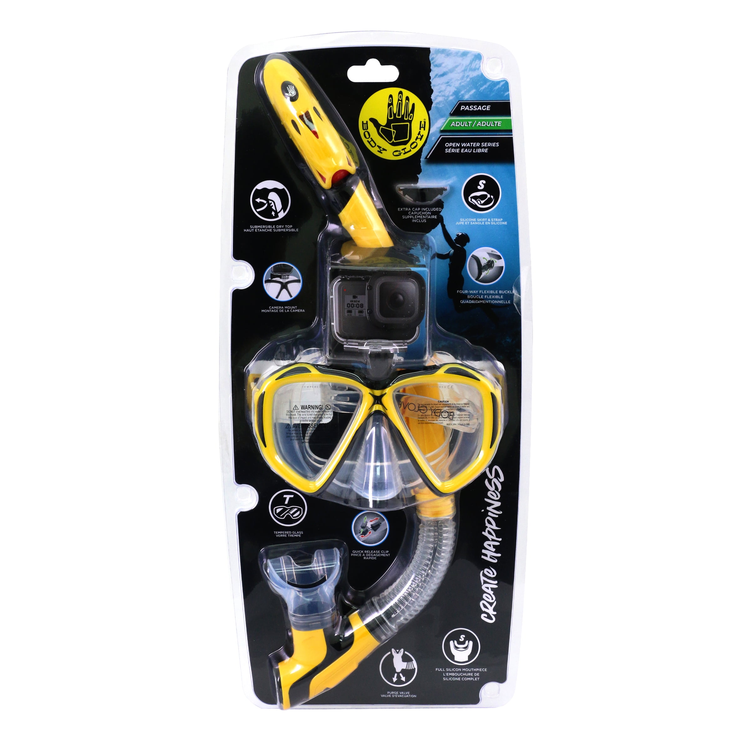 Body Glove Passage Adult Swimming Diving Mask and Snorkel Combo, GoPro Mount on Mask, Yellow