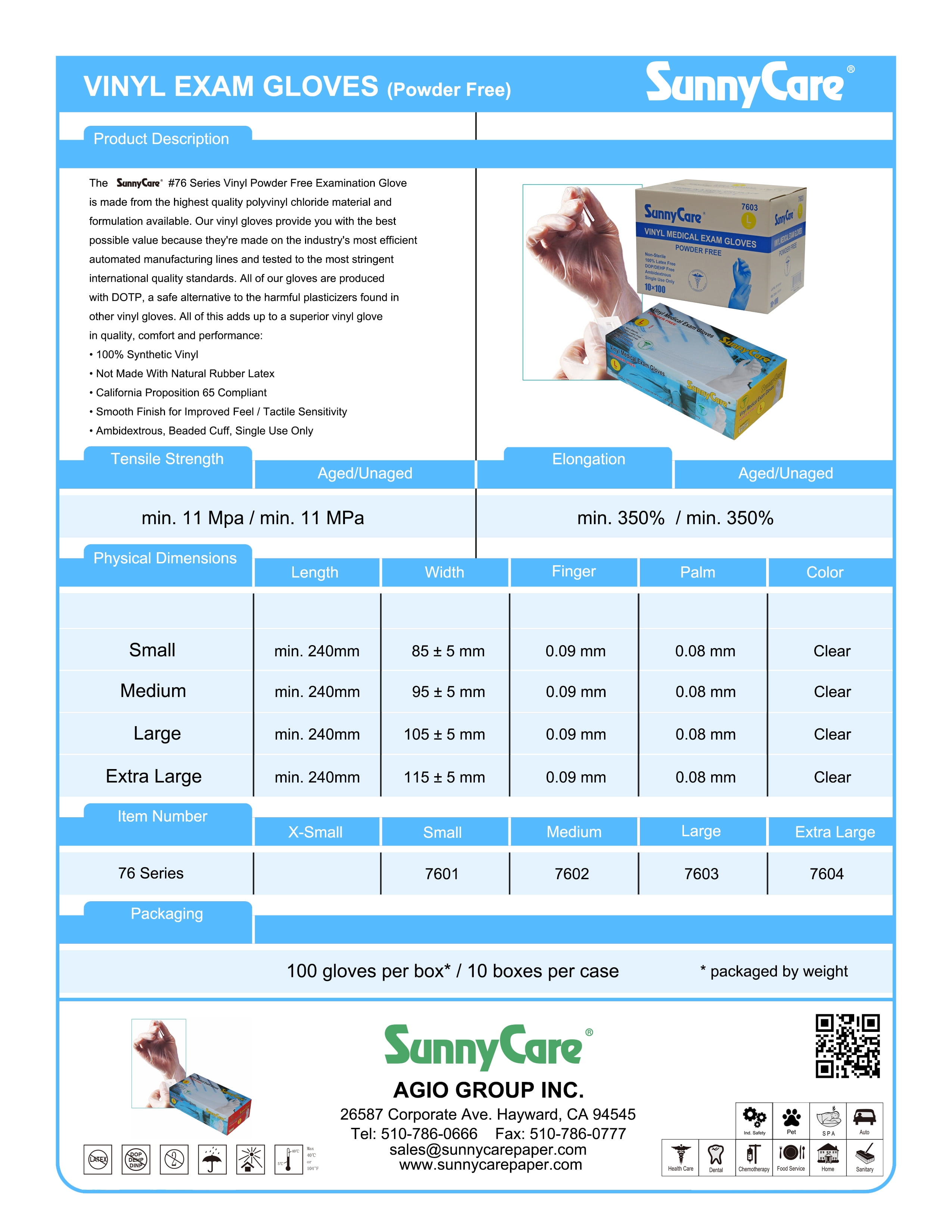 • Sunnycare Vinyl Medical Exam Gloves Powder Free • Size: Medium • FDA Medical Grade Non-Sterile • Thickness:5Mil • 100pcs/box;10boxes/caseSunnycare gloves, gloves, Vinyl gloves, Vinyl Medical Exam Gloves, Exam Gloves