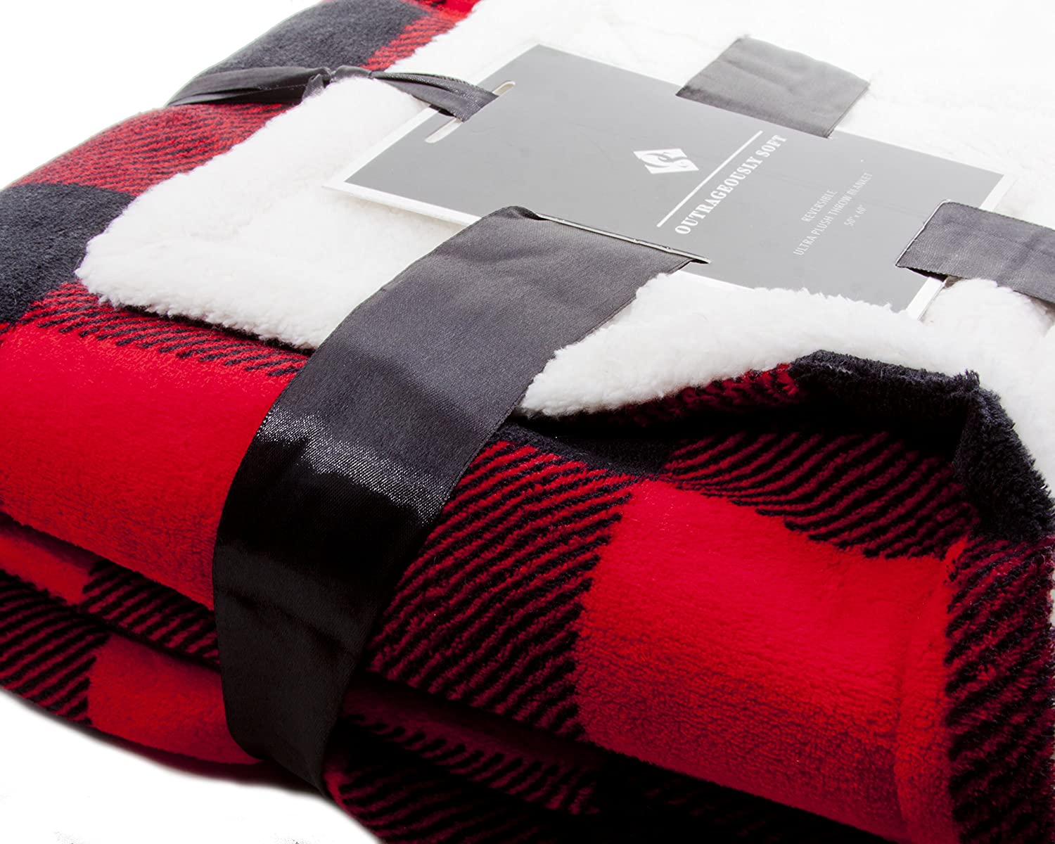 1i4 Group Outrageously Soft 50by60inch Reversible Velvet Berber Throw, Buffalo Plaid