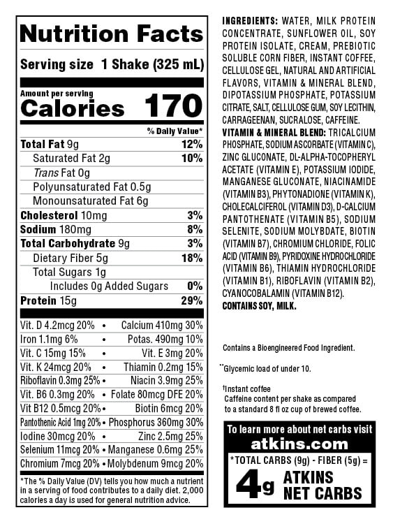 *Total Carbs (9g) – Fiber (5g) = 4g Atkins Net Carbs