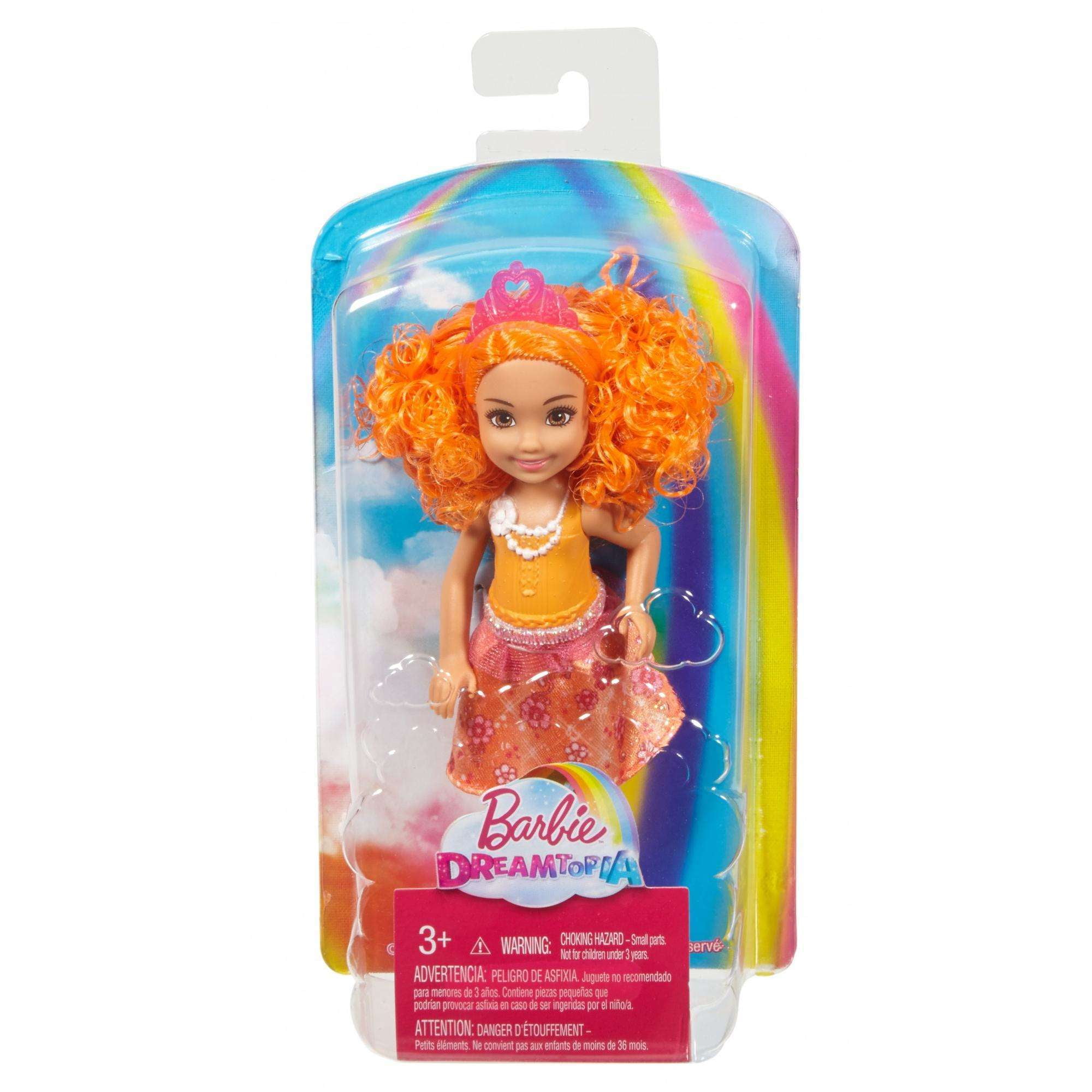 Seven colorful princesses bring the colors of the rainbow to life just as in Barbie Dreamtopia’s Rainbow Cove. This adorable doll celebrates the color orange with vibrant orange hair and a bright outfit! Her orange bodice is decorated with beads, and the print skirt has a sheer ruffled peplum. Cute orange shoes and a pink heart-shaped hairpiece complete the rainbow look. Young dreamers will love exploring new worlds and dreamy stories with the colorful rainbow princess dolls. Collect all of the Barbie Dreamtopia dolls and accessories and let your dreams come to life (each sold separately). Includes orange Rainbow Cove sprite doll wearing skirt, shoes and headpiece. Colors and decorations may vary.