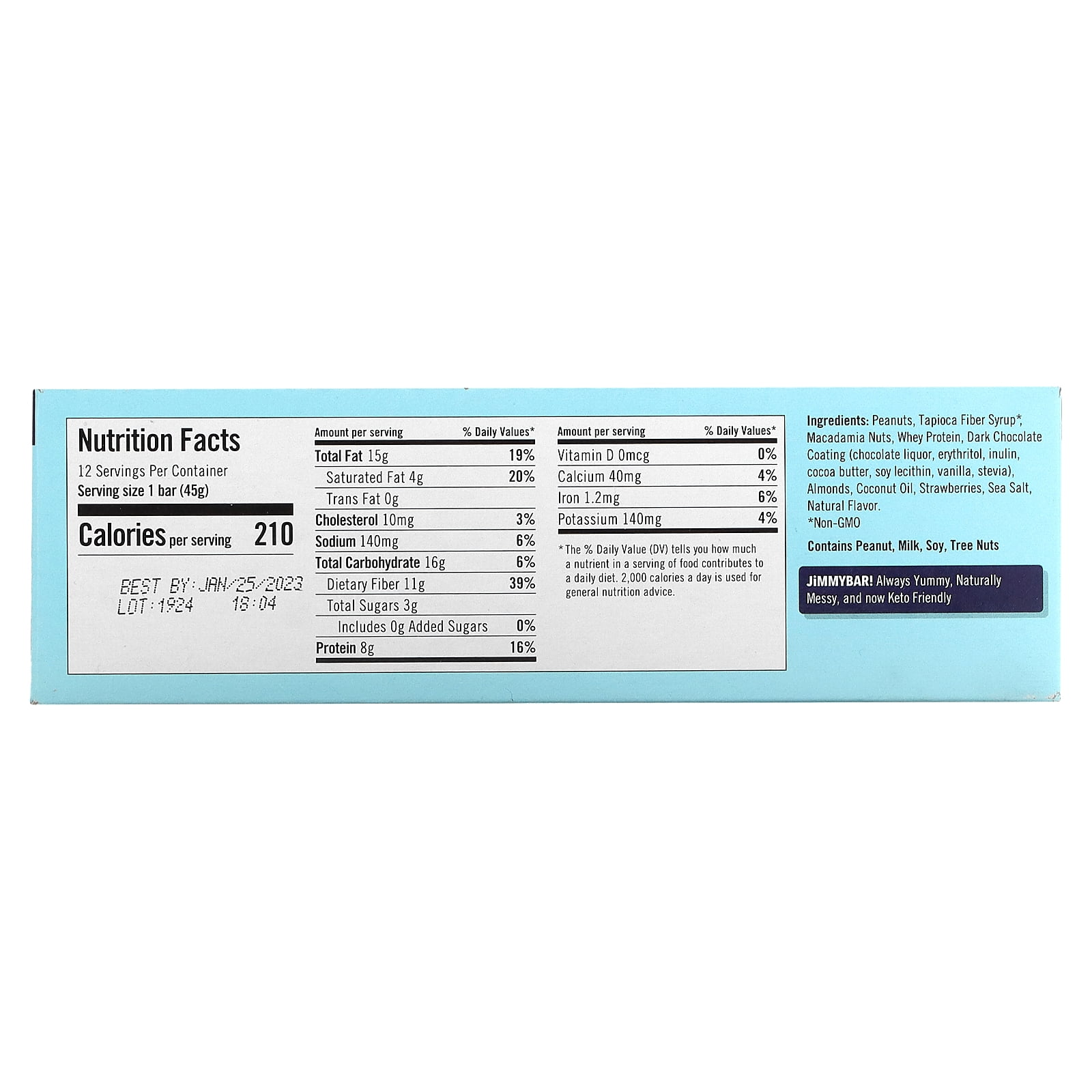 Are You Keto Curious? 15 g Fats 5 g Net Carbs Grain & Gluten Free High Fats. Low Net Carbs Our Story I started JiMMYBAR! with my sister (the best chef ever) in 2014 with one purpose — help people eat healthier. We hope you love our bars as much as we love making them. Kind of a win-win! Jimmybar! Always Yummy, Naturally Messy, and now Keto Friendly. A blend of strawberry, macadamia nuts, almonds, and peanuts with dark chocolate coating, this bar is KETO friendly 15g Fat & just 5g net carb and satisfies your sweet tooth. That’s right – high fat, low net carbs, low sugar, AND a flavor so incredible, your taste buds will go crazy (in a good way) for Keto JiMMY STRAWBERRY Macadamia Nut!