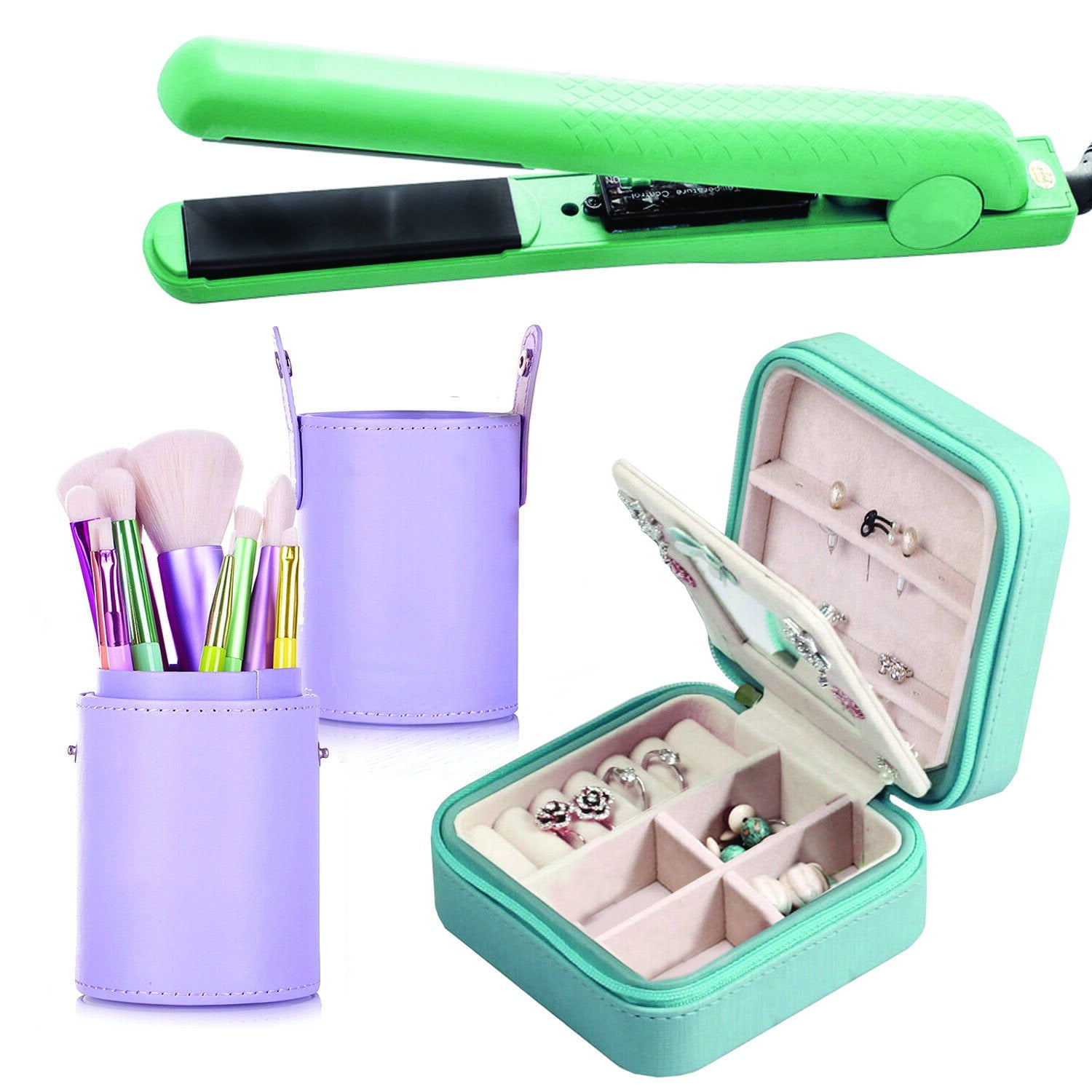 This fun beauty kit including a hair straightener, makeup brushes, and a travel jewelry organizer makes a great gift idea, whether holiday, birthday or other.