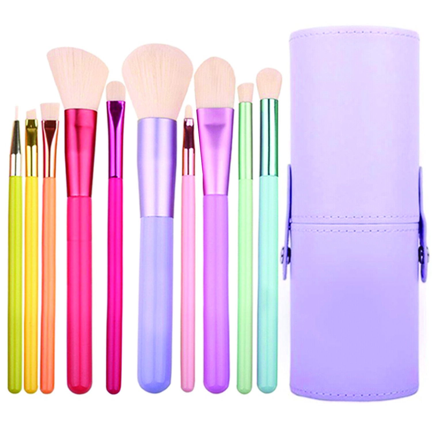 These makeup brushes are great for applying various types of makeup products and have pretty multi-colored wooden handles. It includes a travel case for easy storage.