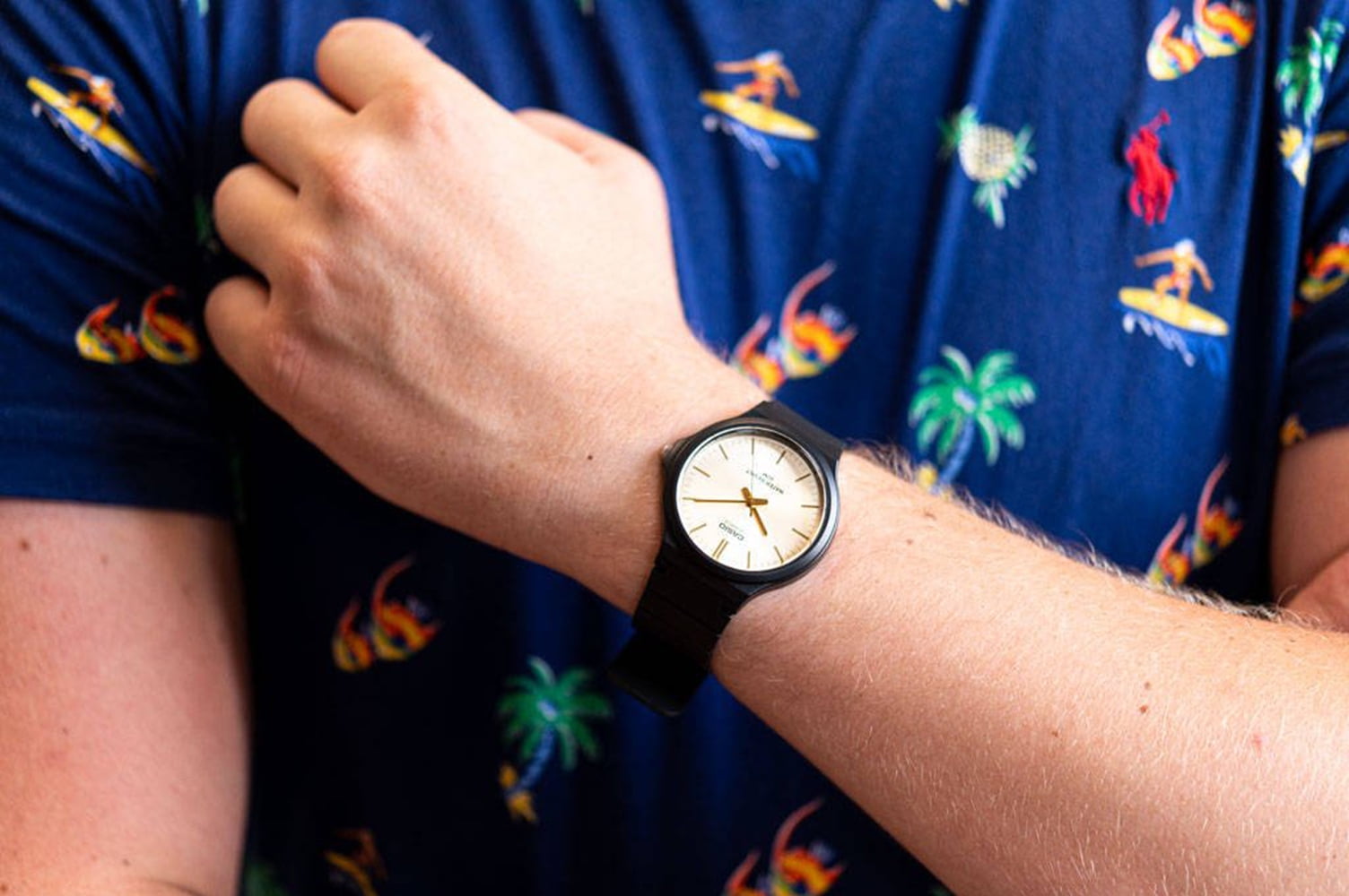 - Gold tone hands and index hour markers