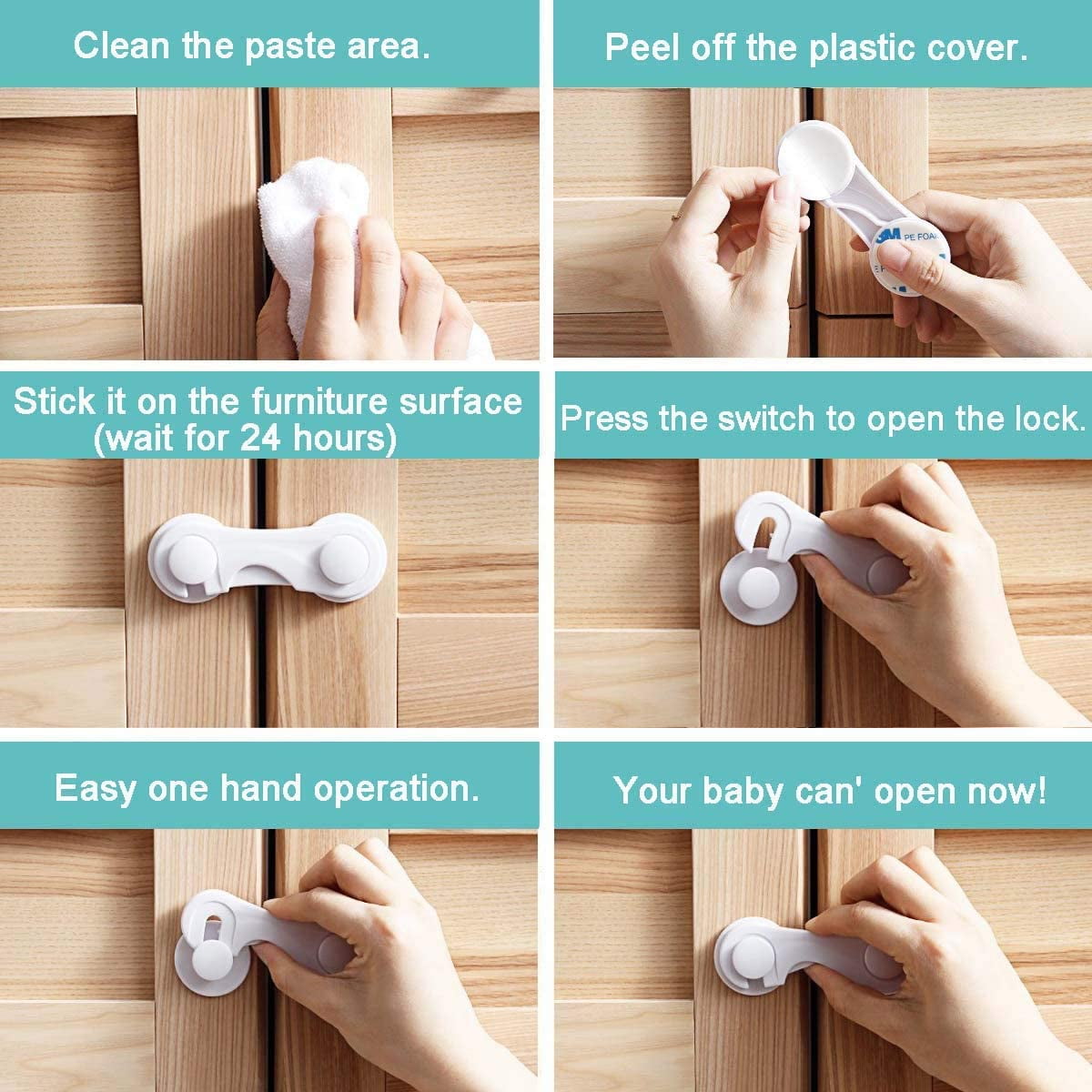 - BABY SAFETY GUARANTNND: Our child proof set of cabinet locks protects your babies and kids from being hurt by cabinet’s doors or dangerous objects in it, with this cabinet safety lock set baby protection is guaranteed.