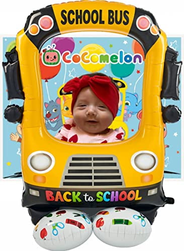 - (1) 56" Selfie School Bus Airloonz Foil Balloon (Air-filled only. Does Not Float), (1) 28" Round CoComelon Foil Balloon, (2) 17" Round CoComelon Foil Balloons, (1) 18" Happy Birthday Present Foil Balloon, (2) 19" Star Shape Foil Balloons 1- Lilac, 1- Lime Green and (8) 11" Latex balloons 2- Robins Egg Blue, 2- Lilac, 2- Yellow and 2- Lime Green.