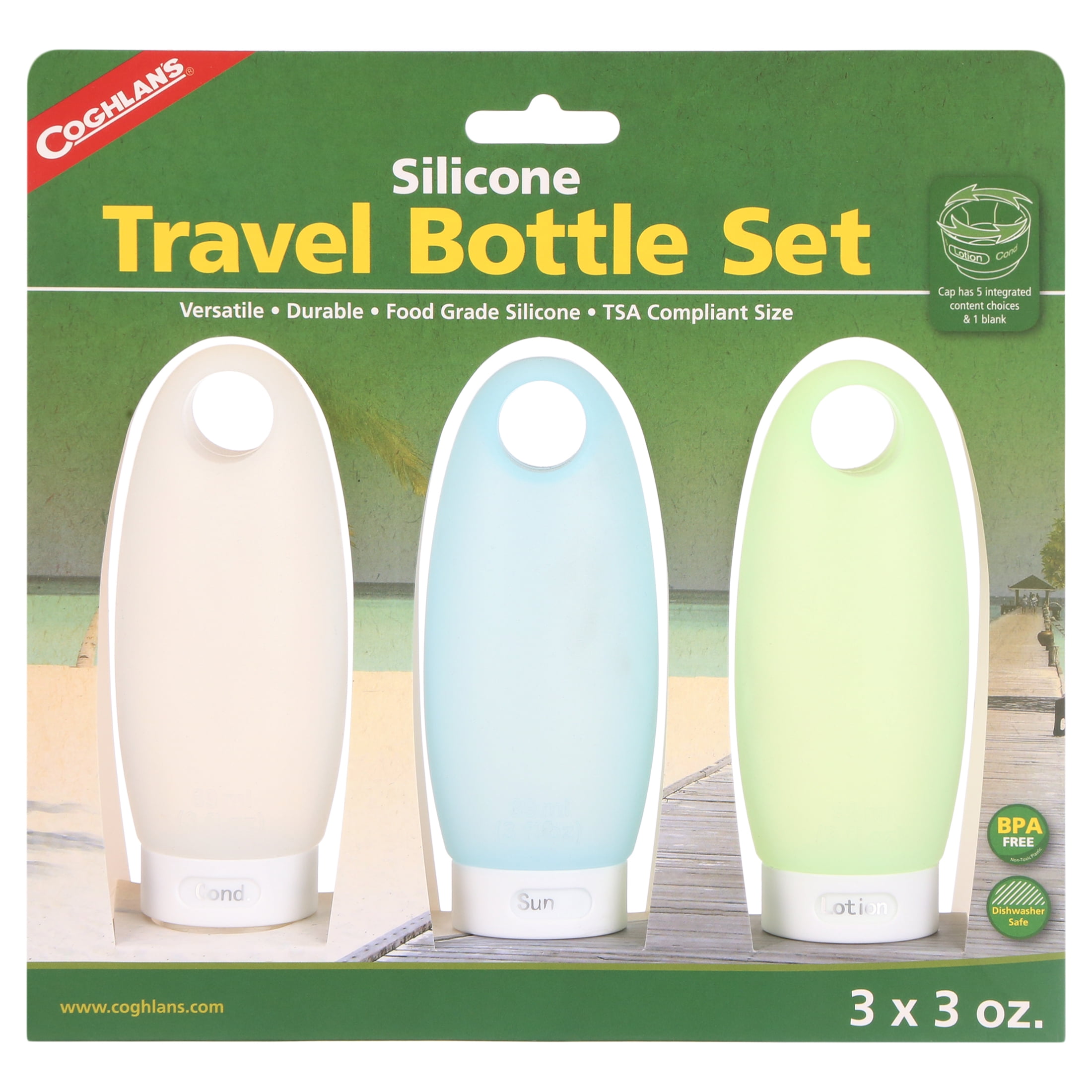 Coghlan’s Silicone Travel Bottles are ideal for the outdoors and anywhere the next adventure takes you. The integrated hole allows them to be securely attached to a bag or backpack with a carabiner (not included) in seconds. Food-safe (FDA), 100% BPA-free and phthalate-free, they are rugged enough for a backpack and soft enough to allow all of the contents to be squeezed out. The selector cap makes identifying contents a breeze and the large opening makes refills quick and easy. Airplane carry-on approved sizing ensures worry-free check-ins.