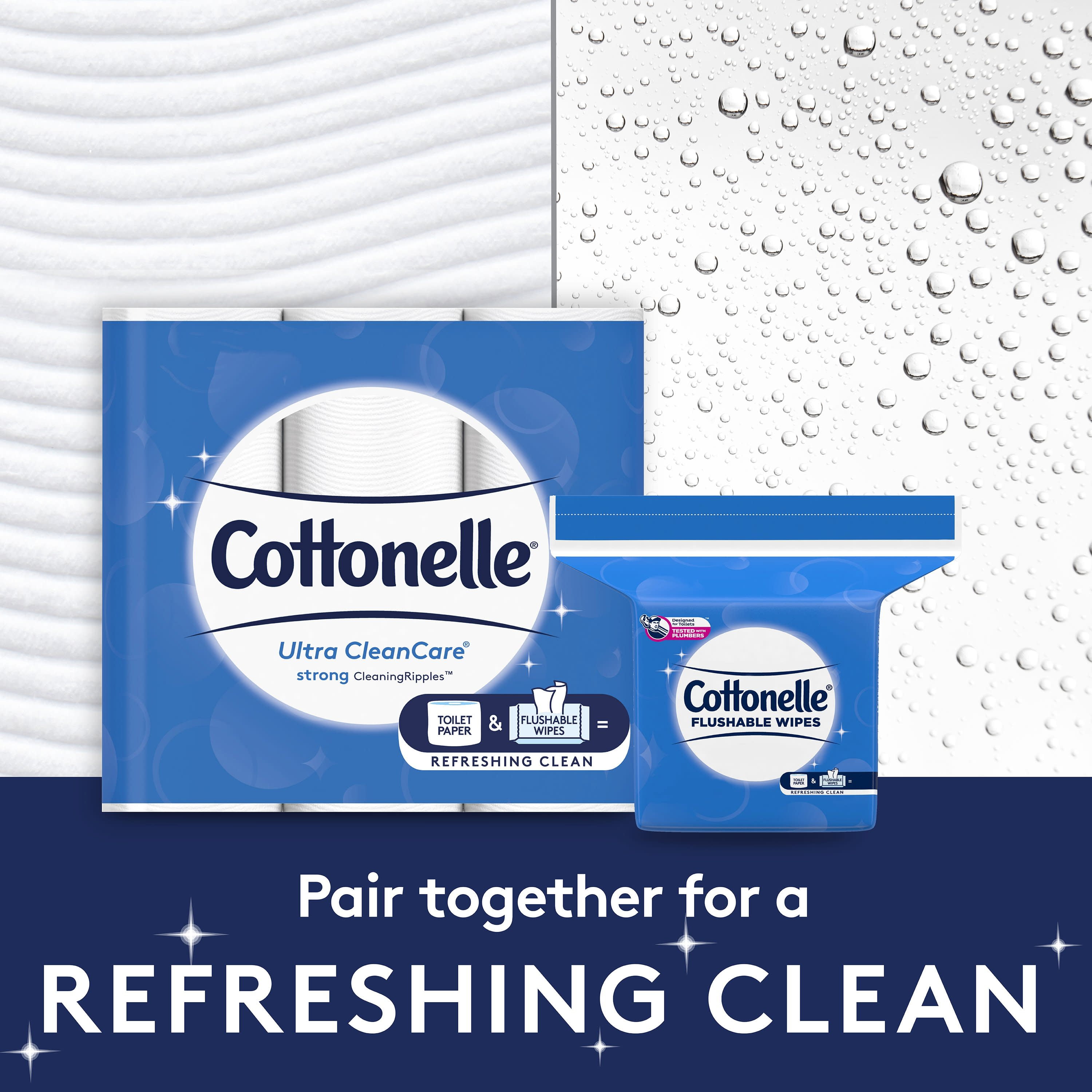 Cottonelle Flushable Wet Wipes are 100% flushable and are the only flushable wipes endorsed by a Waste Water Utility (JEA). Designed for toilets and tested with plumbers, Cottonelle flushable wipes begin breaking down immediately after flushing and are stored in resealable packs to preserve freshness and moisture. Ideal for everyday hygiene or potty training toddlers, Cottonelle Flushable Wet Wipes provide freshness you can feel with Cleaning Ripples and Cleansing Water for a Complete Clean. Fibers are 100% biodegradable, free of plastic, sewer-safe and septic-safe. Alcohol-free, paraben-free, dye-free with no harsh ingredients provide a refreshingly clean experience when paired with Cottonelle Clean Care, Comfort Care, or Gentle Care toilet paper.