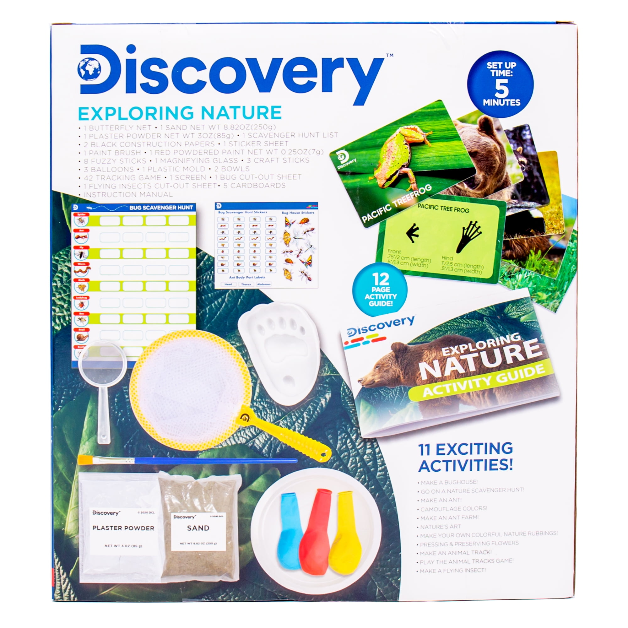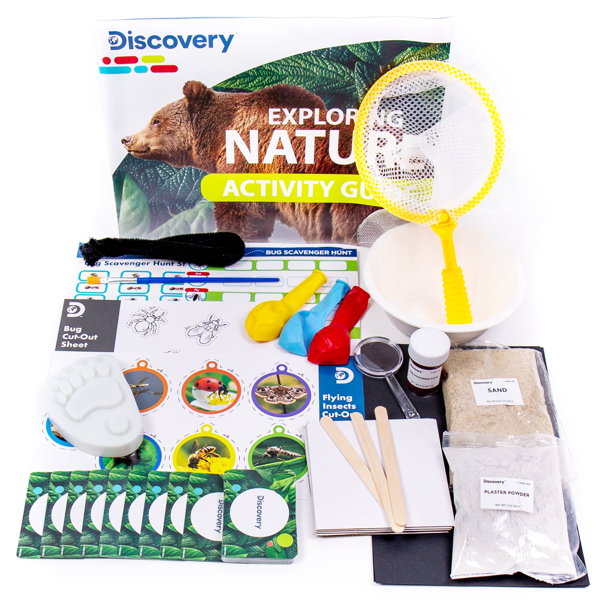 - Kit Includes: 1 Butterfly Net, Sand (250g), Plaster (85g), 1 Nature Scavenger Hunt List, Construction Paper, 1 Sticker Sheet, 1 Paintbrush, 1 Powdered Paint (7g), 7 Fuzzy Sticks, 1 Magnifying Glass, 1 Craft Stick, 3 Latex Balloons, 1 Plastic Mold, 1 Bowl, Easy-to-Follow Instructions