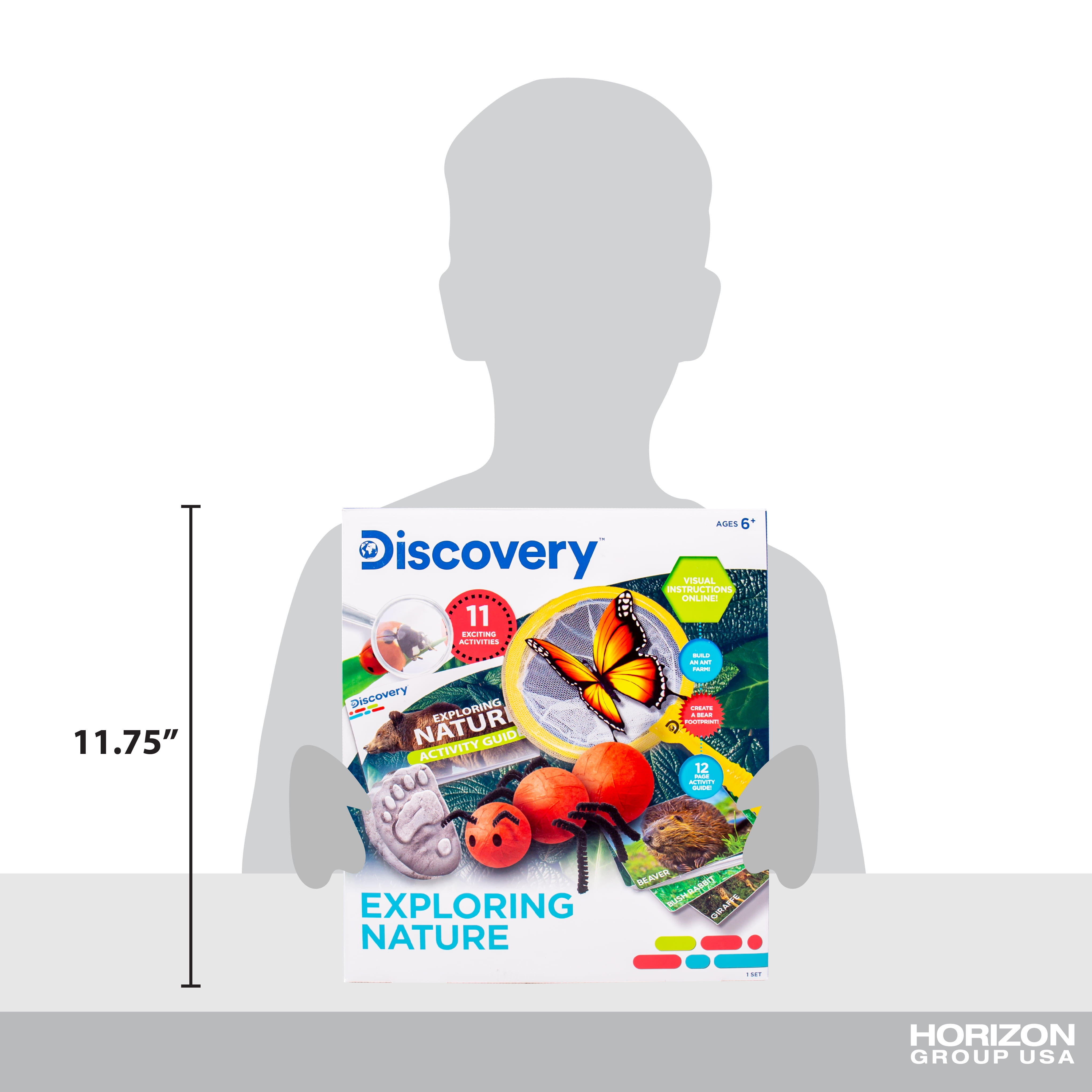 Discover the great in the great outdoors with the Exploring Nature STEAM kit from Discovery™! Embrace the wonders of nature with 12 hands-on activities that bring science and art together. Build your own bughouse and ant farm for the little creatures in your neighborhood to explore. Then, go on a nature scavenger hunt to see how many insects, critters, and habitats you can find! Discover the ways you can make art with the things around you by creating colorful nature rubbings, pressing and preserving flowers, and more! Then, put your knowledge of nature to the test with an exciting animal tracks memory game! There are endless ways to learn about the wonders of the world around us, and with this STEAM set, you can explore them all firsthand! Recommended for ages 6 years & up.