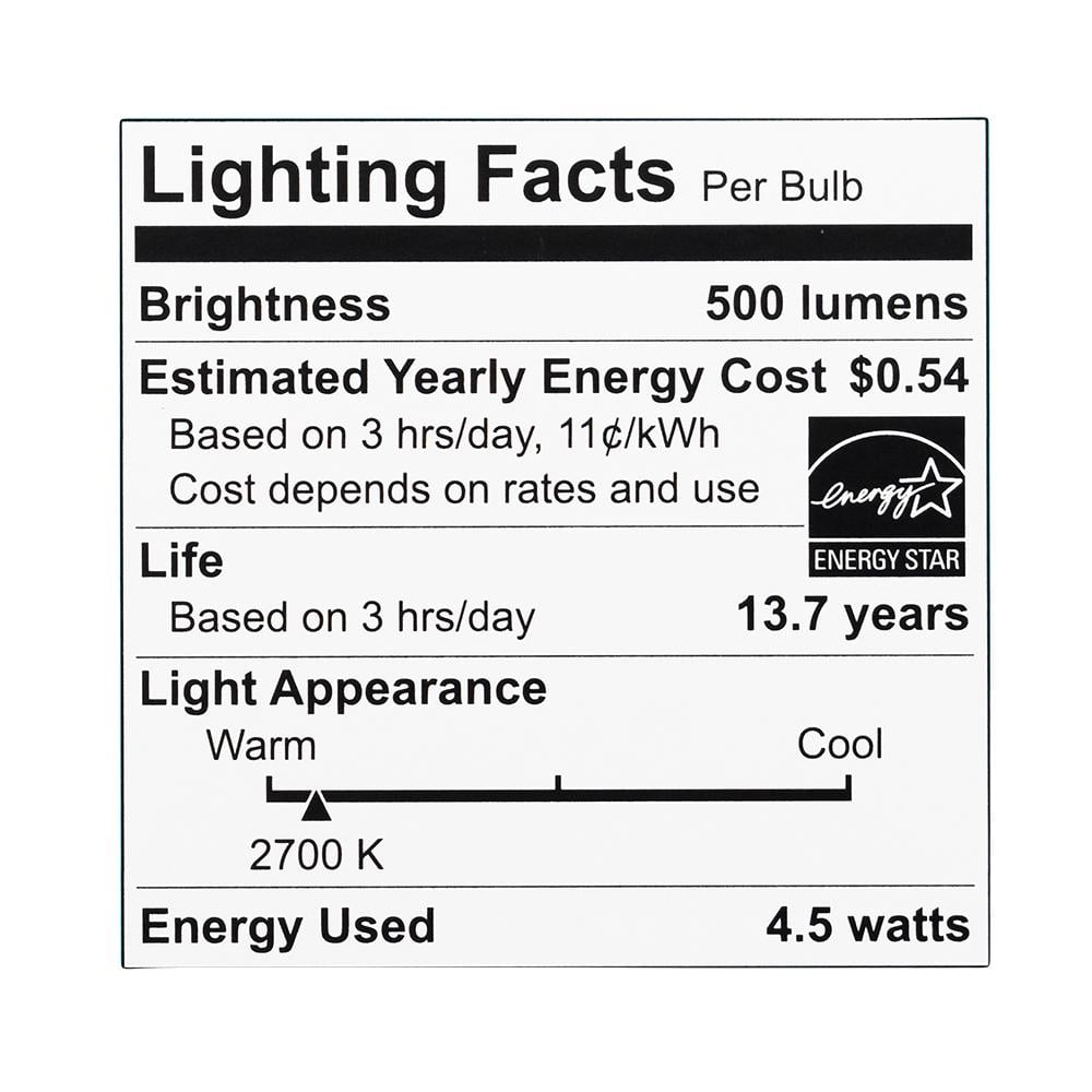 This 3-pack of 60W Equivalent EcoSmart G25 medium base filament LED light bulb is a stylish replacement for traditional incandescent bulbs – with all the benefits of LED technology. The color temperature of this light bulb is Soft White (2700K). These LED light bulbs are dimmable, have a clear all-glass exterior, and provides an omni-directional (360°) distribution of light. The EcoSmart LED 60W equivalent decorative LED filament light bulb uses only 4.5-Watt of energy – that is a 93% savings over traditional lighting – and that means savings on your energy bill every month. The 15,000-hour lifespan and 5 year warranty makes these light bulbs a great choice for applications in your home and office. Start saving today with EcoSmart.EcoSmart 60-Watt Equivalent G25 Dimmable Energy Star Clear Filament Vintage Style LED Light Bulb Soft White (3-Pack)