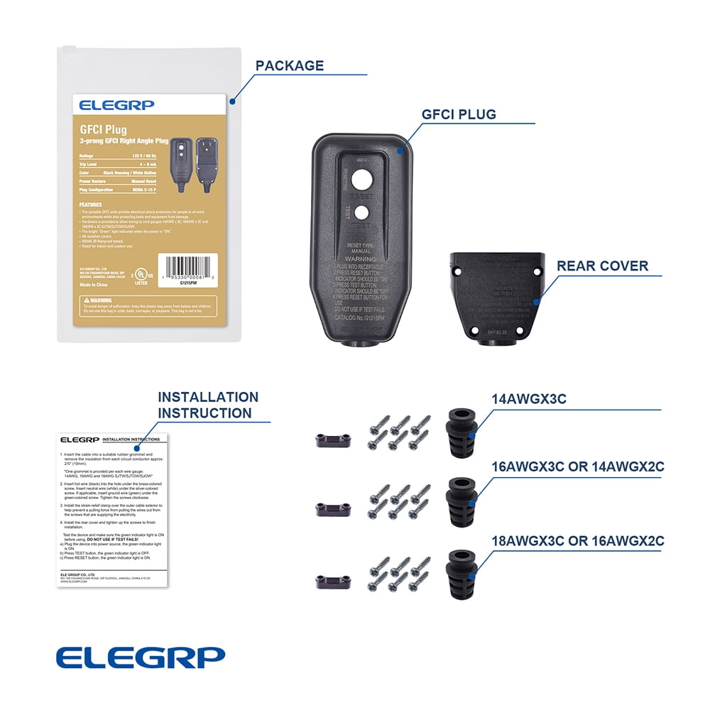 The Portable GFCI units (Ground Fault Circuit Interrupters) offer protection for 2 wire or 3 wire appliances and tools to avoid electric shock to users in all working environments.Perfect for indoor or outdoor using in a variety of temporary power applications, such as generators, cleaning machine, power tools (saws, drills, air compressors), lawn equipment, cutting machine, vacuum cleaner, pumps, heaters, household electrical appliances. Easy to be installed, providing 3 different grommets for wiring cable 14AWG, 16AWG and 18AWG.