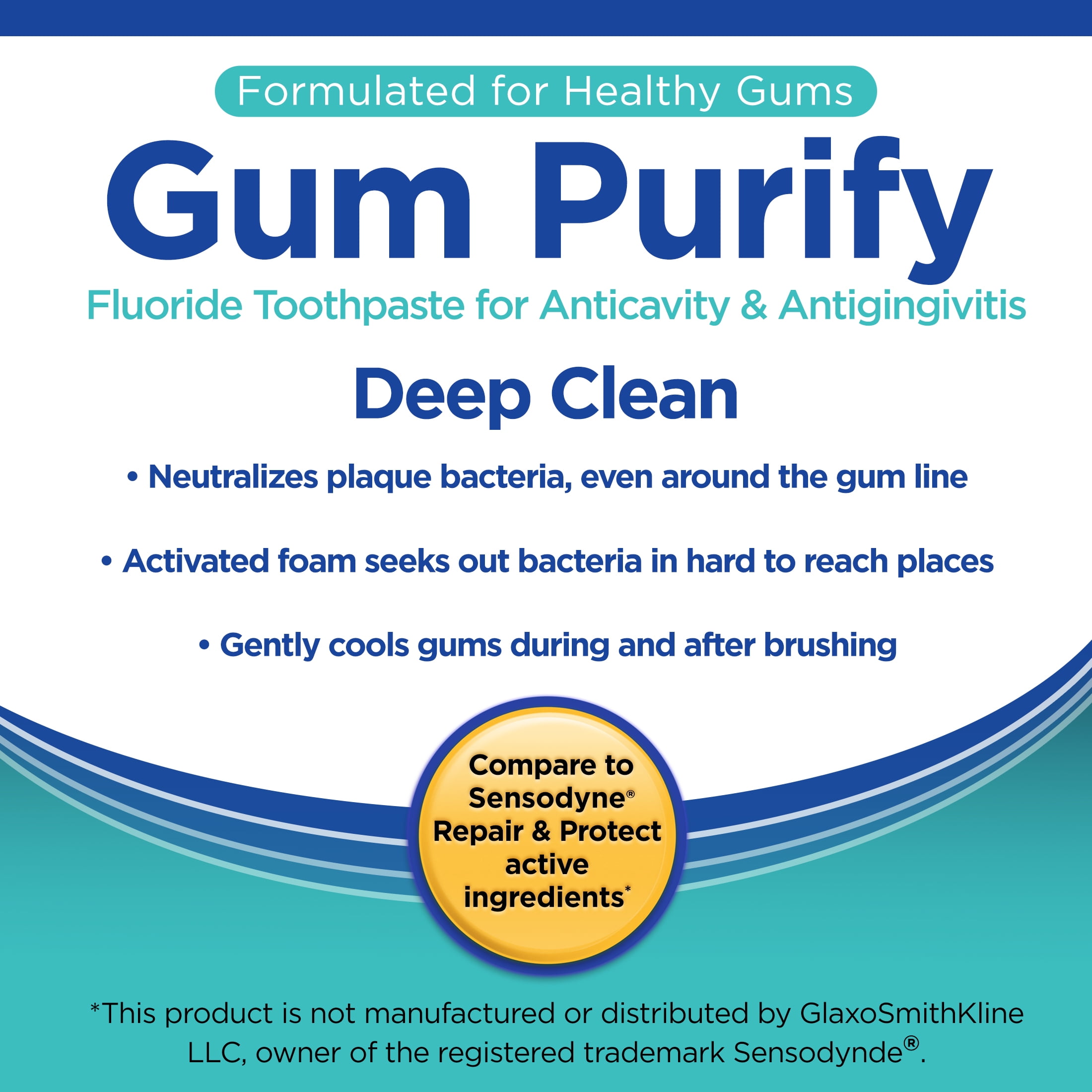 Equate Deep Clean Gum Purify Toothpaste with Fluoride targets tough bacteria to keep your gums clean and smile fresh. Formulated specifically to neutralize hidden plaque bacteria, it can even remove bacteria around the gum line. Equate Deep Clean Gum Purify Toothpaste has an activated foam that seeks out bacteria in hard-to-reach places while gently cooling gums during and after brushing. In addition to removing plaque bacteria, this toothpaste also has fluoride, which protects against cavities. Maintain healthy gums and a bright smile with Equate Deep Clean Gum Purify Toothpaste with Fluoride.