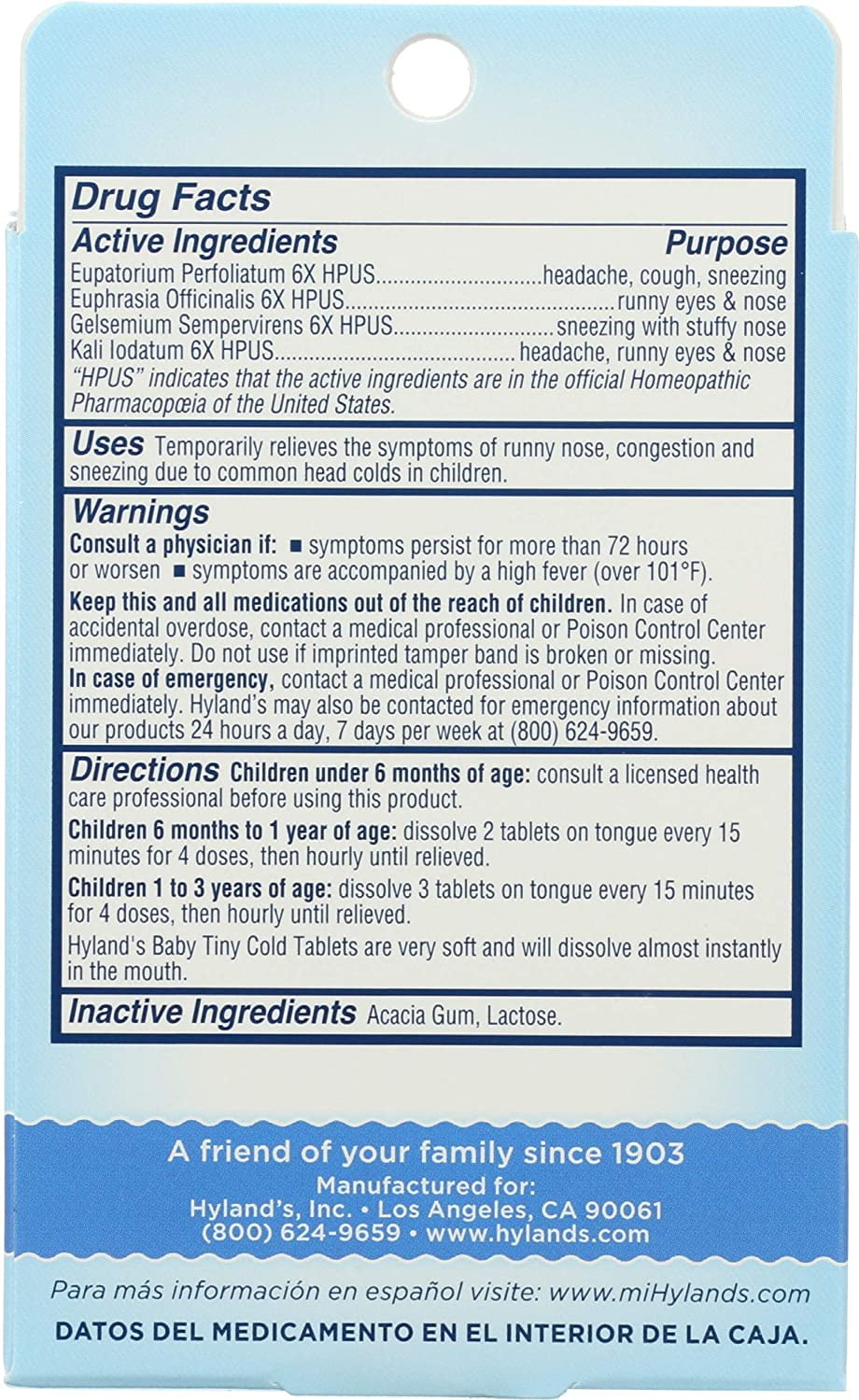 - Hyland’s Baby Tiny Cold Tablets, 125 Each