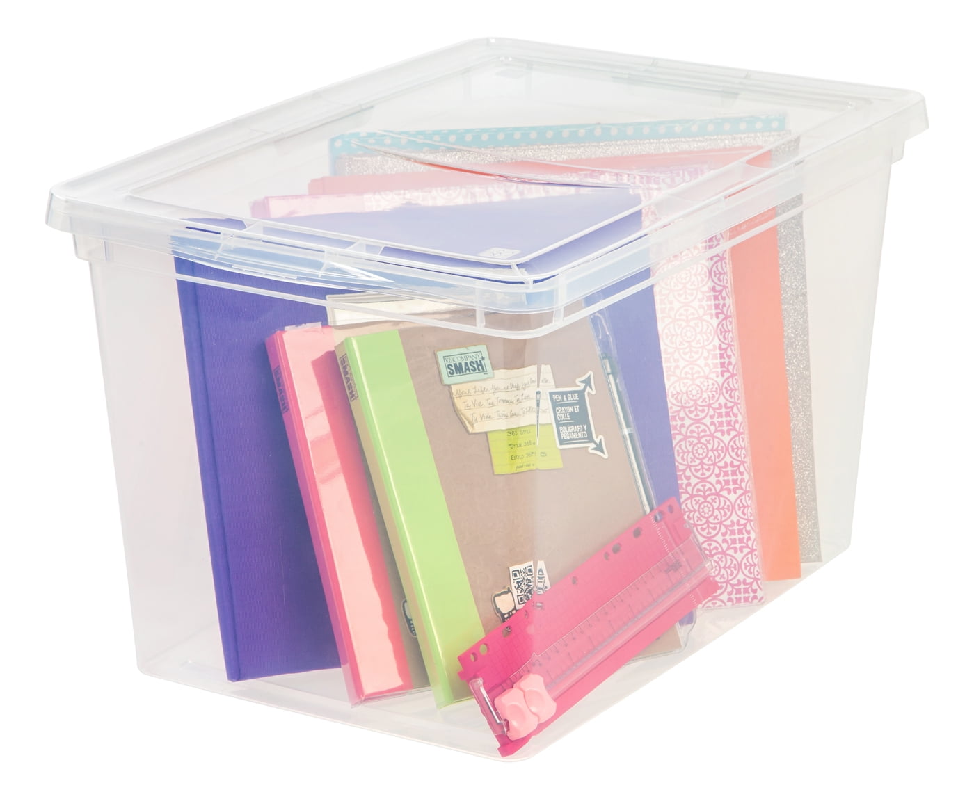 IRIS USA, 68Qt Clear Plastic Snap Lid Storage Containers. This classic storage box is the perfect size for blankets, comforters and other bulky adult clothing items. The snap tight lid stores your items securely and the ultra clear body allows you to see what items are stored inside. Stack these boxes together to maximize the use of any storage space. IRIS USA, Solutions for Everyday Living!