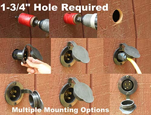 15 Amp 125 Volts AC 2Pole 3Wire Flanged Inlet Male Plug w/Weather Proof Front Cover OnlySuper Tough Black Nylon Body Resists Damage From UV Degradation, Severe Impact, Abrasion, ChemicalsDIY Ready – 13/4” Hole Size, Clear SeeThru wiring block & included screw options makes install fast!1875 Watt Rating Wiring Gauge 1218 AWG, Cord Grip for use with No. 123 through No. 183 cordsThe Pro’s Choice!, cUL Listed, with Lifetime NoB.S. Warranty!Health