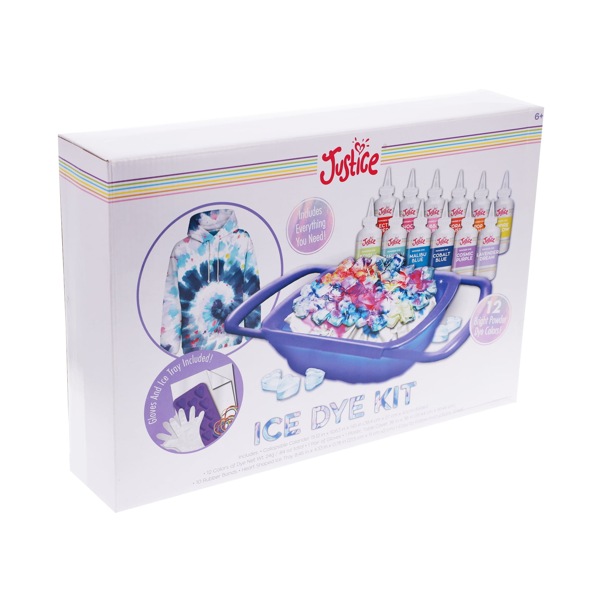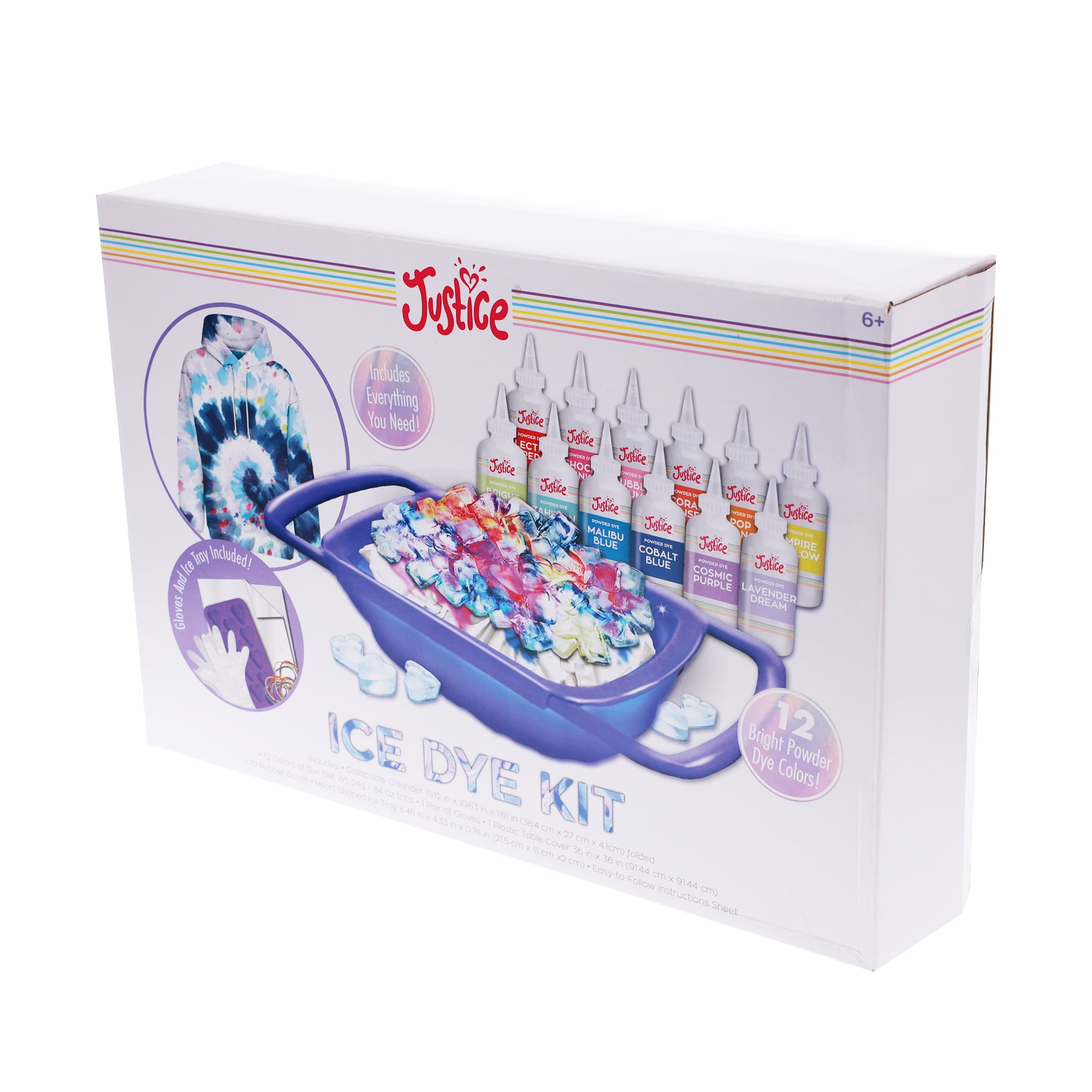 If you are a fan of tie-dye, then you must try ice dye! The Justice DIY Tie-Dye Ice Dye Kit is the perfect tool to get you stared in the world of fashion design! Create your own fantastic functional fashion pieces! The box includes everything needed, except your shirt. Just wet, wring, scrunch, cover with ice, sprinkle powder, then wait! The possibilities are endless! Host an ice dye party and create matching shirts with your best friends. Or make matching family shirts for your upcoming vacation. Designed for children ages 6 years and older.