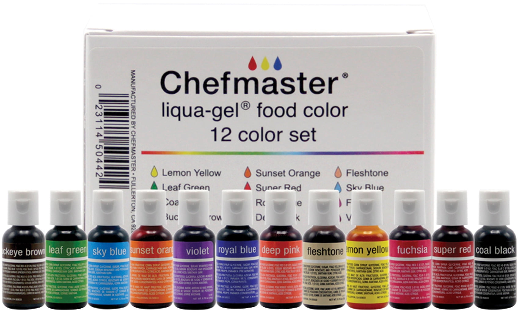 Liqua-Gel is an effective food coloring at its finest. Highly concentrated, vibrant colors mix easily and provide consistent tones without altering the texture of your product. Liqua-Gel can be easily used by home users. This package contains 12 .7 fl oz bottles of gel food coloring in a variety of colors.