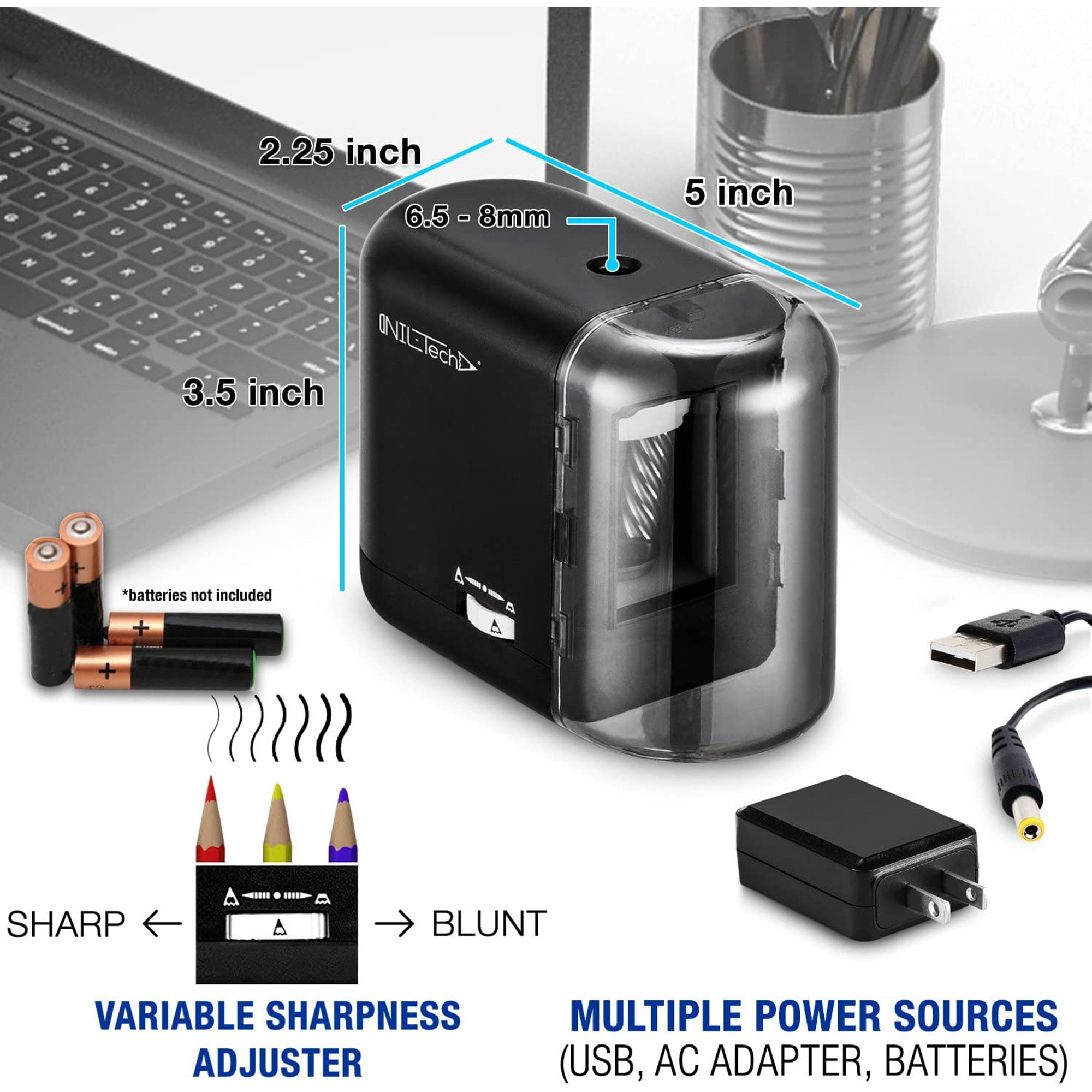 - PORTABLE ELECTRIC PENCIL SHARPENER – Our heavy-duty pencil sharpener can be charged using three different power sources: USB, AC, or AA batteries! This means you can sharpen your pencils on the go without worrying about running out of power!
