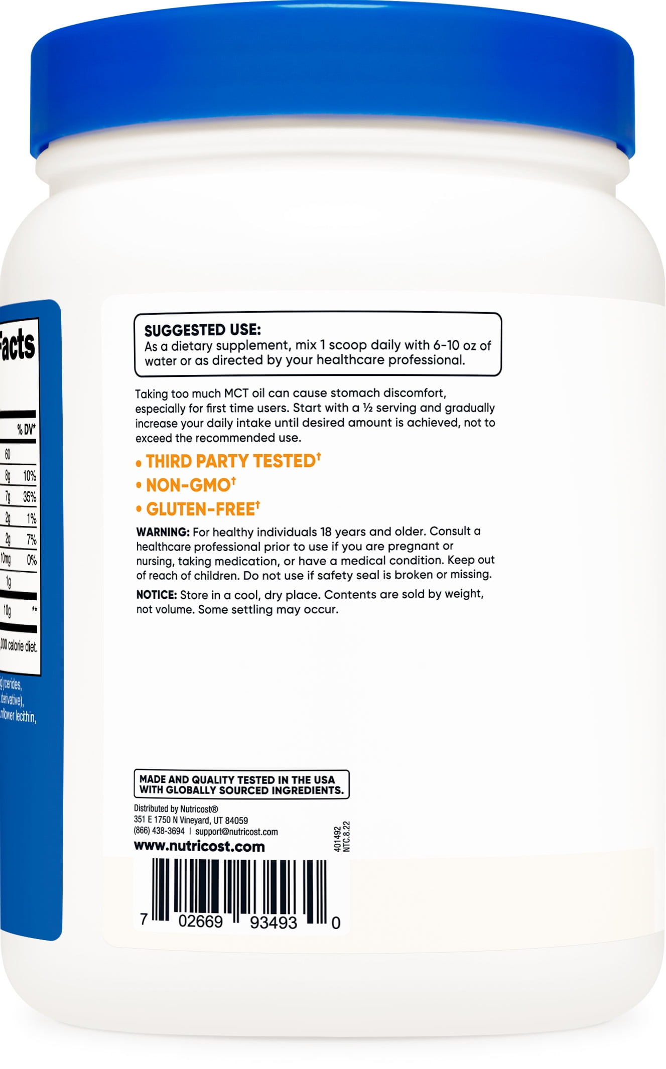 MCTs (medium chain triglycerides) are very popular for those on Ketogenic and Low Carb Diets. Our Powdered MCT Oil is made from coconuts, and contains high amounts of both C8 and C10 MCTs. Nutricost MCT Oil Powder is 45 servings per bottle. This dietary supplement is gluten free and non-GMO. All Nutricost products are made in a GMP Compliant, FDA Registered Facility and all ingredients and finished products are tested by 3rd party, iso-accredited laboratories. Only What You Need, Nothing You Don’t! We’ve simplified our entire philosophy down to that single concept. This motto is what drives us to find the highest quality sources of the purest ingredients for each supplement we offer. From single ingredients to our simple formulations for targeted effects, each of our supplements stays clear and simple with what they provide.