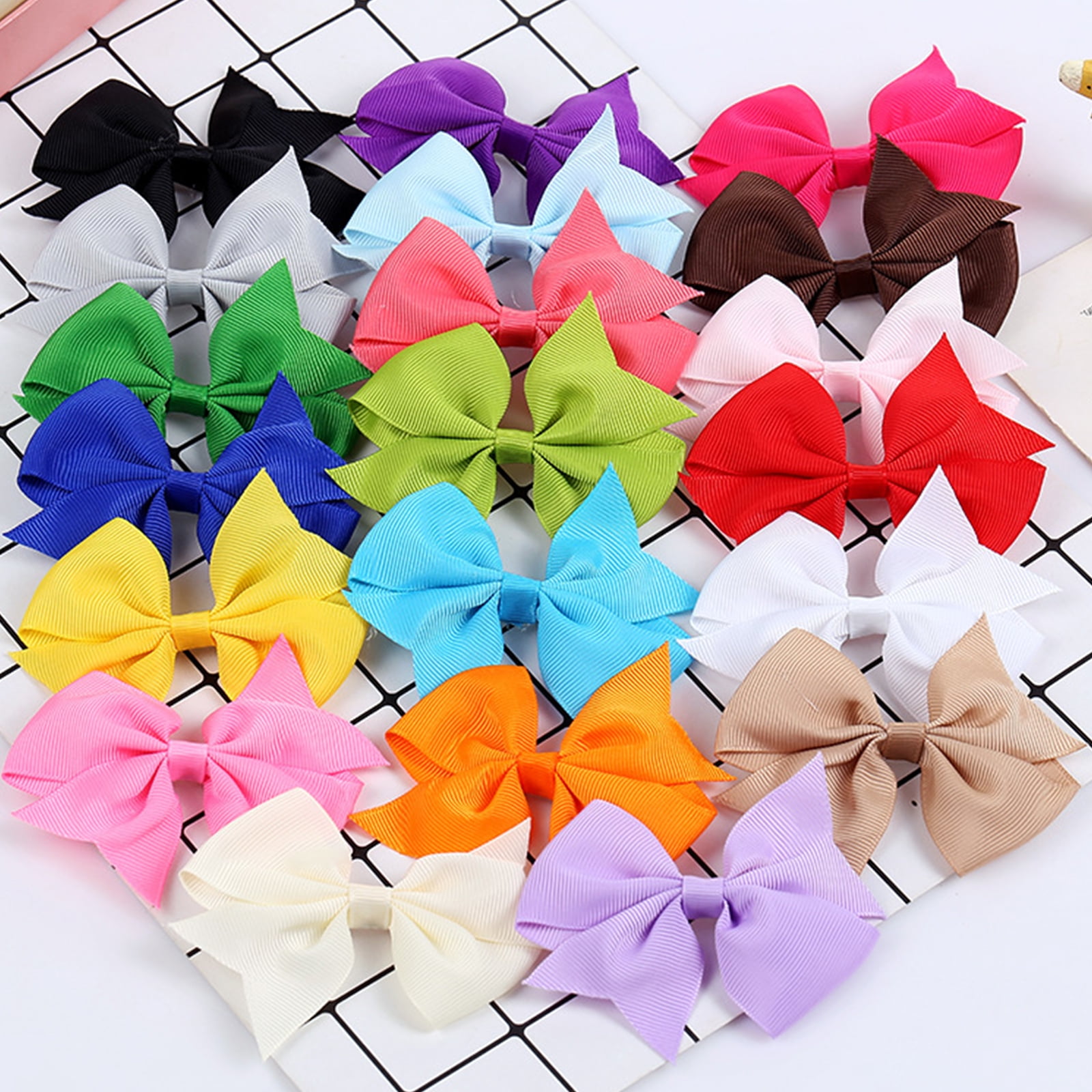Lovely and Bright 20 Colors: 40pcs hair bow clips, 20 different colors as shown, very gorgeous and beautiful hair accessories.