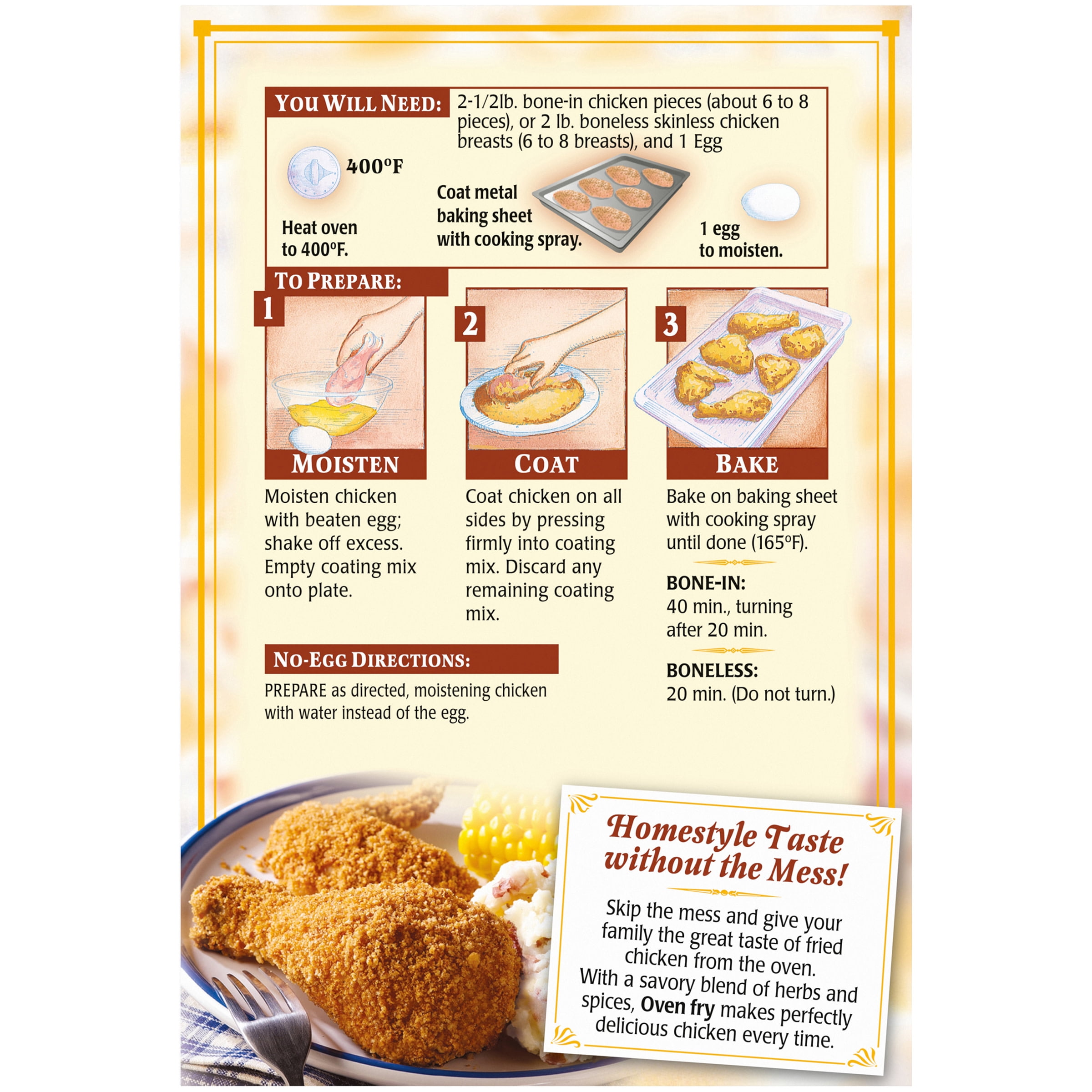 - Extra crispy seasoning mix adds extra crunch to oven baked chicken