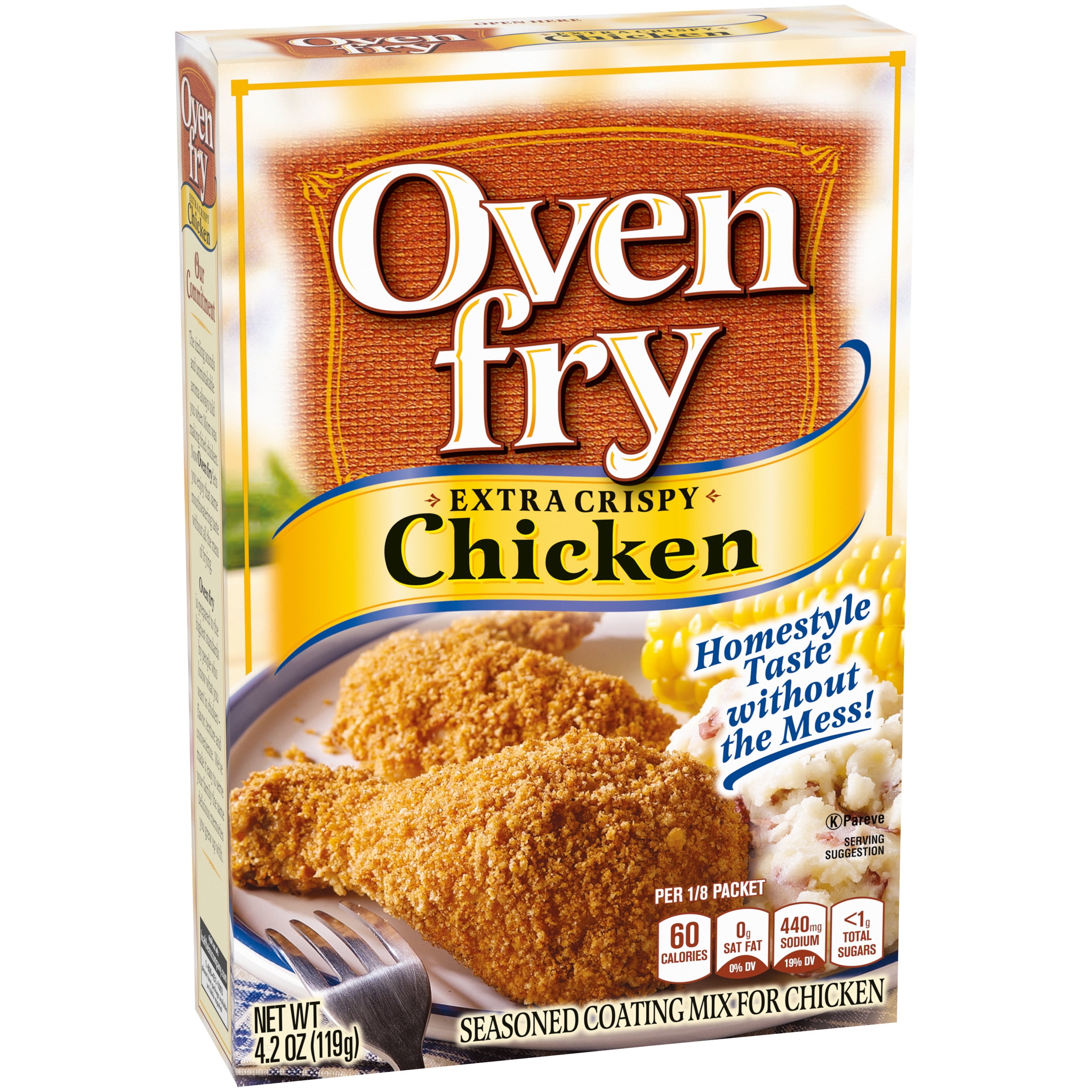 - One 4.2 oz box of Kraft Oven Fry Extra Crispy Seasoned Coating for Chicken