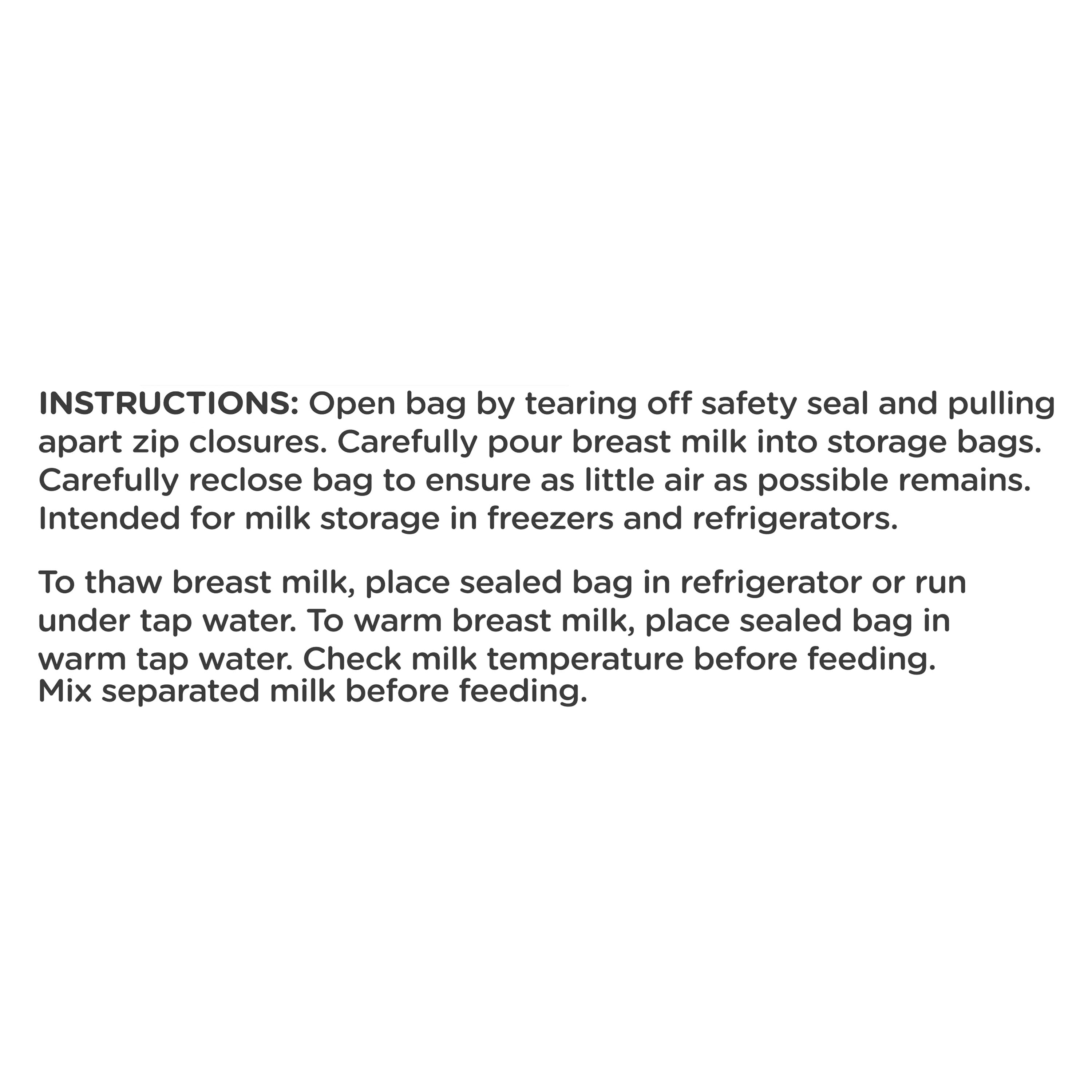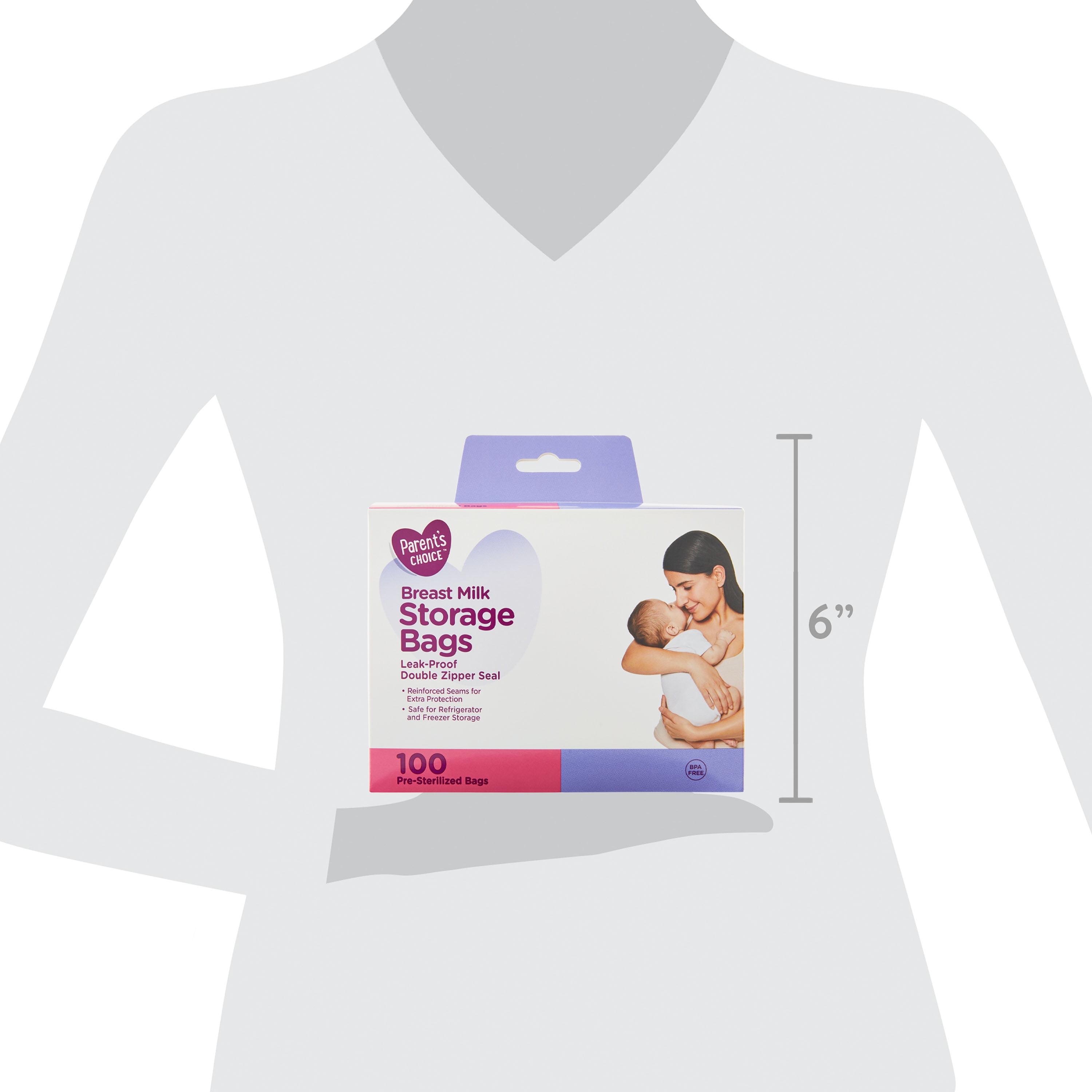 Give your little ones the nourishment they need when they need it with Parent’s Choice Breast Milk Storage Bags. Each box comes with 100 BPA-free, pre-sterilized breast milk storage bags that are safe for refrigerator and freezer storage. The leak-proof double zipper seal helps prevent spills so your baby gets the most out of every bag. To use, open the bag by tearing off safety seal and pulling apart zip closures. Carefully pour breast milk into storage bags. Carefully reclose bag to ensure as little air as possible remains. To thaw breast milk, place sealed bag in refrigerator or run under tap water. To warm, place sealed bag in warm tap water. Check milk temperature and mix separated milk before feeding. Busy moms on the go love the quality and convenience of Parent’s Choice Breast Milk Storage Bags.