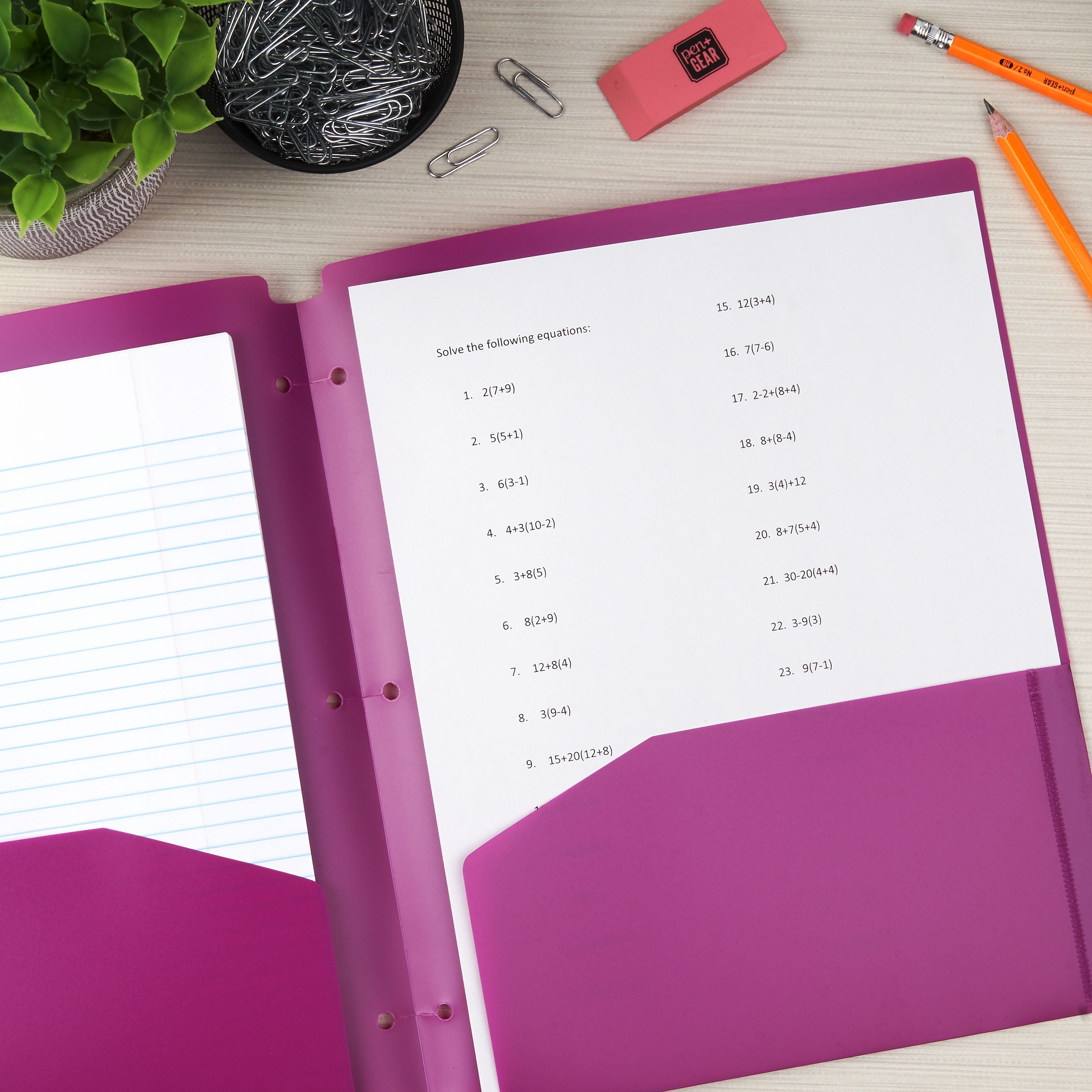 Pen + Gear 2-Pocker Poly Portfolio with Prongs, Assorted Colors: