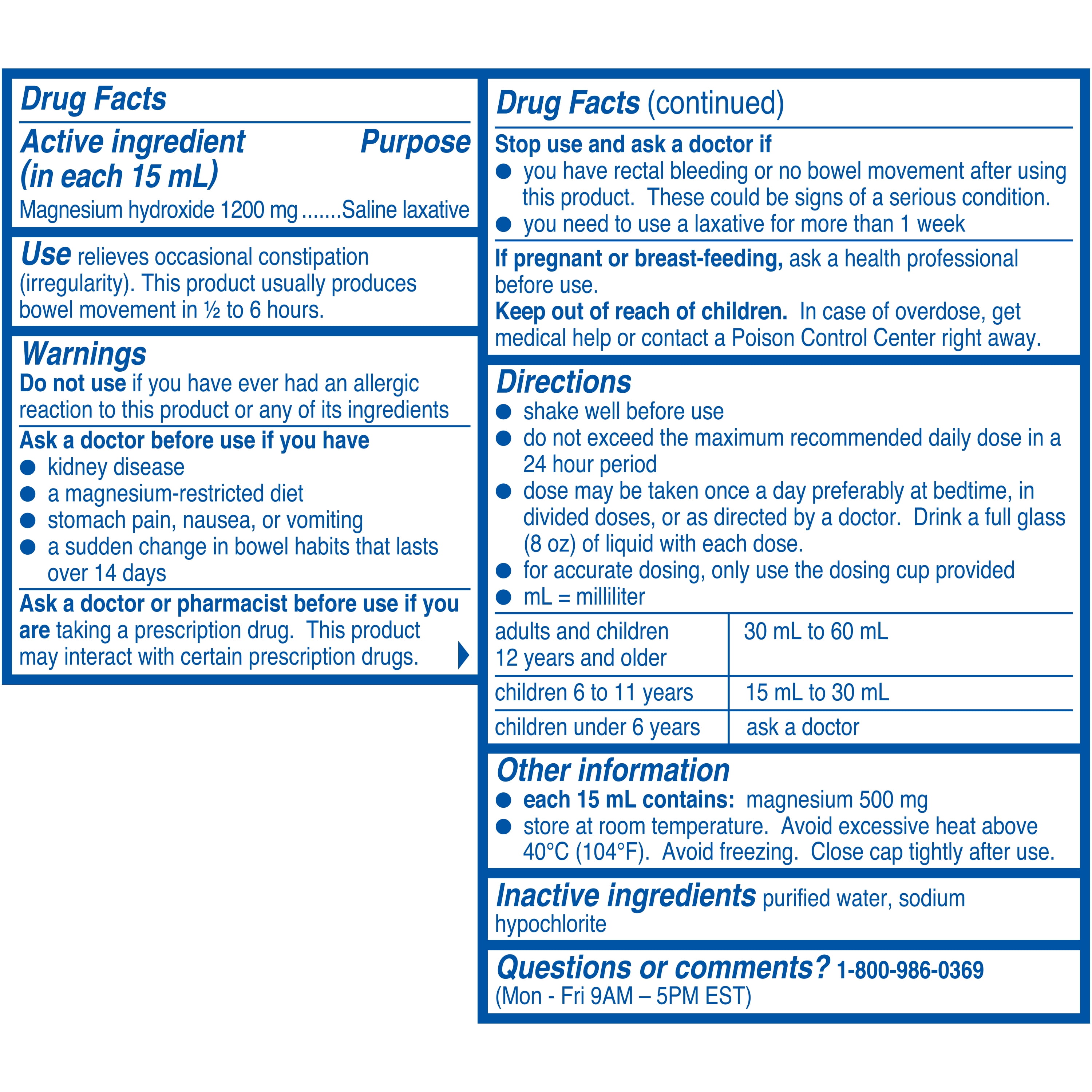 - Phillips’ Milk Of Magnesia Liquid Laxative, Original, 4 Fl Oz: Phillips’ Milk of Magnesia Original Flavor liquid laxative works with the body’s natural process to relieve occasional constipation and helps you get back to regular.