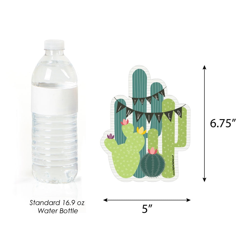 - Cactus party invitations SIZE 5 inches by 6.75 inches. The included envelopes measure 5 inches by 7 inches. The back of each Prickly Cactus party invitation has space to add your party details: For: Date: Time: Place: Given By: RSVP: