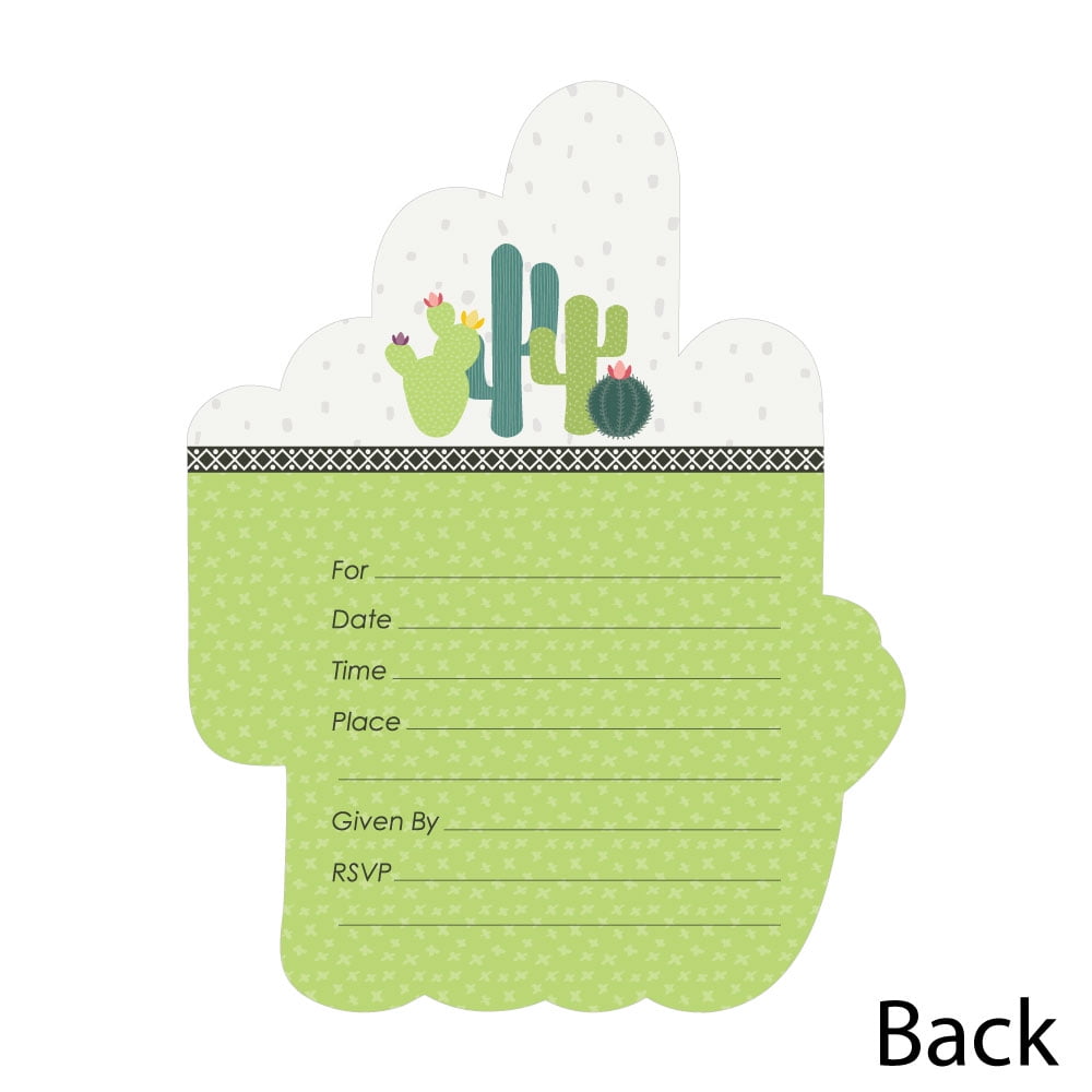 Prickly Cactus Party Fill-In the Blank Invitation Set INCLUDES 12 fiesta invitations and 12 premium white envelopes. Prickly Cactus Party fill-in invitations are perfect for any event. The cactus theme is great for a wedding, bridal shower, baby shower, gender reveal, engagement, birthday or bachelorette party.