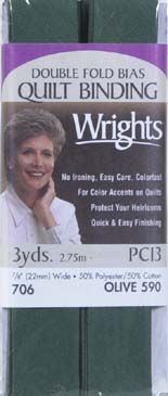 Double Fold Quilt Binding 7/8’X3yd-Olive, Pk 3, Wrights