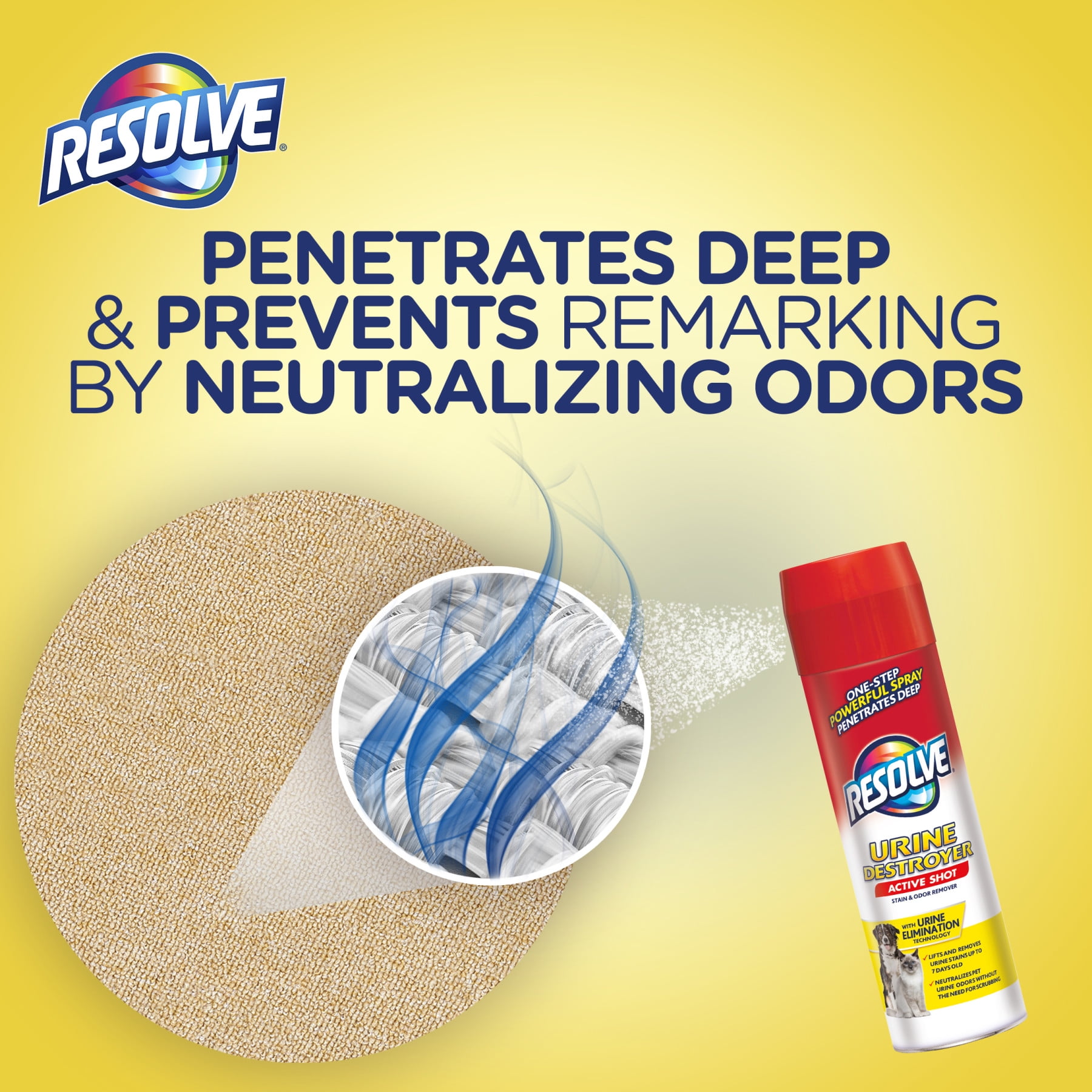 The Resolve Urine Neutralizer, Stain and Odor Remover, Floor, Upholstery and Carpet Cleaner lifts and removes urine stains up to 7 days old. It’s one-step powerful foam that penetrates deep. It neutralizes pet urine odors without the need for scrubbing. The Resolve Urine Neutralizer also prevents remarking by neutralizing odors. It’s safe for use around pets when used as directed. This formula makes carpet, floor and upholstery cleaning super easy! It is safe for use on most carpets, rugs, upholstery, hard surface floors and car interiors. Try also other Pet Specialist products like the Resolve Pet Specialist Heavy Traffic Foam, Carpet Cleaner, 22oz.