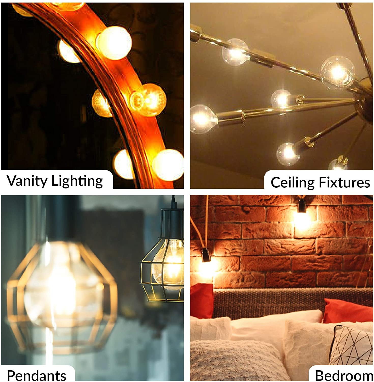 - MANY LIGHTING APPLICATIONS: The Decorative Edison Vintage Globe Round Shape Light Bulbs are Great for Vanity Lighting, Makeup Mirror, Bathroom, Bedrooms, Living Room Chandelier, Pendant Lights, Outdoor Patio String Lights in Homes, Restaurants, Caf, Retail Shops, etc.