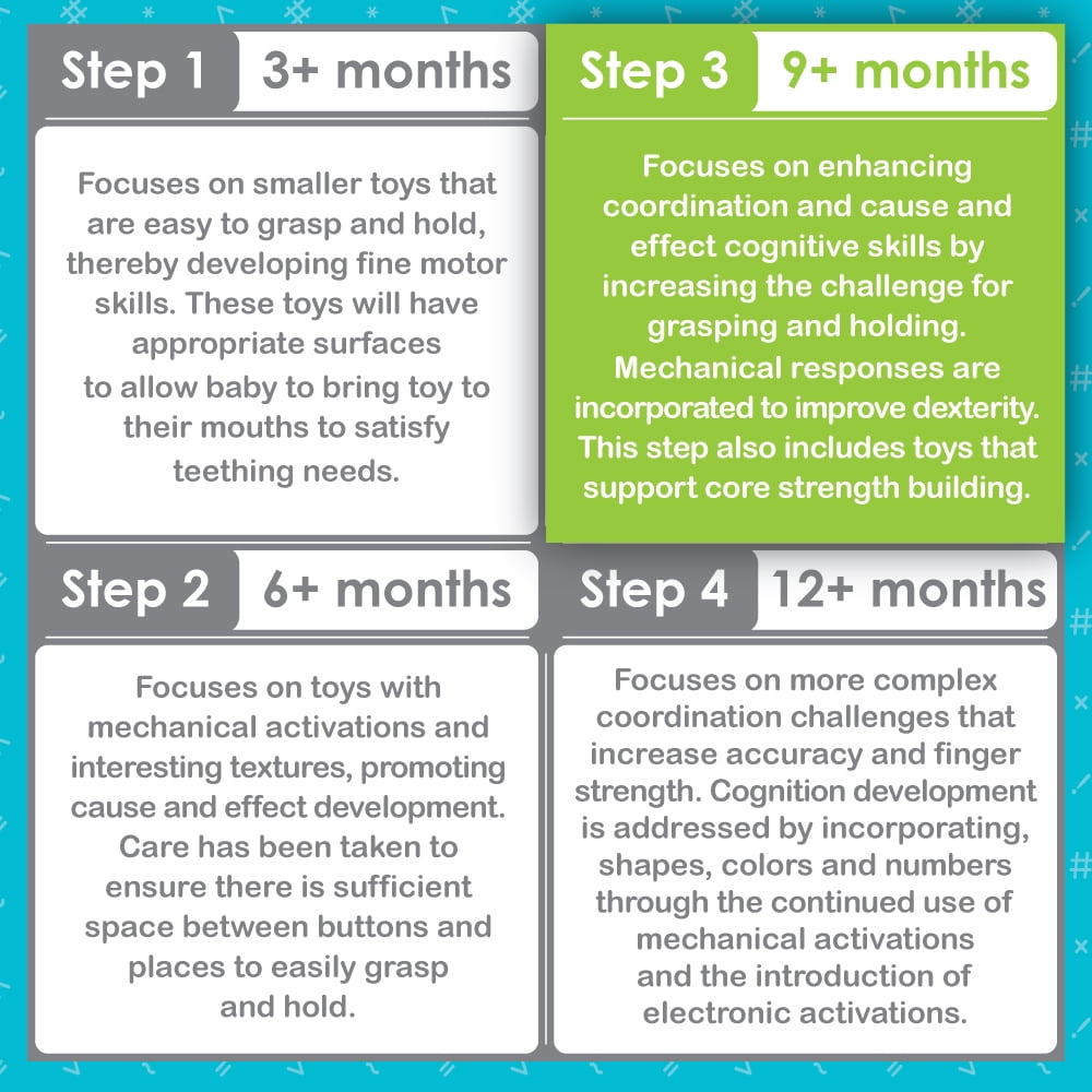 - PERFECT GIFT FOR CHILDREN 9 MONTHS & UP: The Buddy Bot designed by Smart Steps is recommended for children 9 months and up. The toy promotes children’s cognitive development, hand and eye coordination, and core strength building.