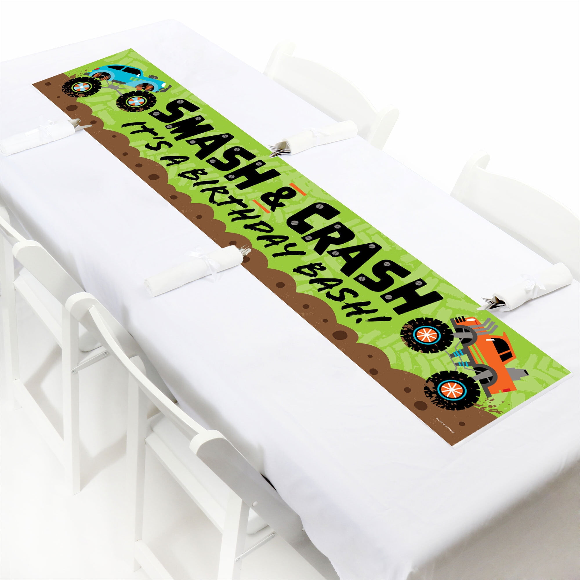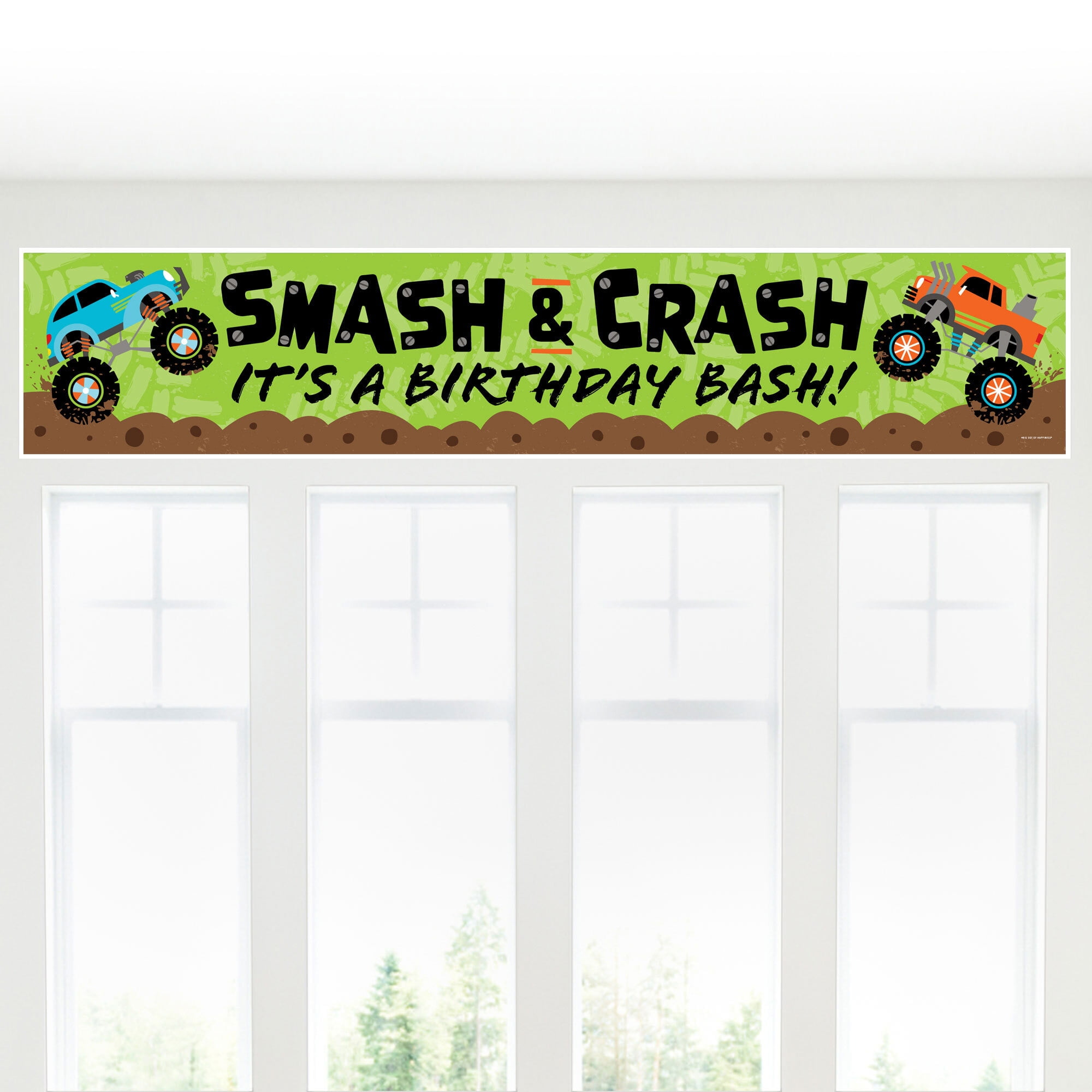 - BIRTHDAY PARTY DECORATIONS: A Smash and Crash – Monster Truck Banner is an easy way to decorate for your party and bring your birthday party theme to life. Hang at the entrance of your birthday party, over the food table or candy buffet, at the gift table or behind the head table. Smash and Crash – Monster Truck banners are also great when displayed outdoors to welcome all your birthday party guests as they arrive.