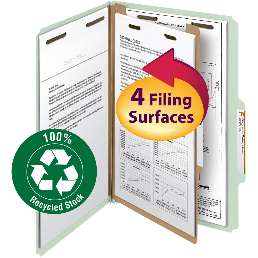 Heavy-duty classification folders with one divider are made with a high percentage of recycled material for the environmentally conscious office and make excellent project files. Heavy-duty classification folders are ideal for personnel, real estate, accounting or banking files. Sturdy, 25 point pressboard has tear-resistant tape in a matching color.