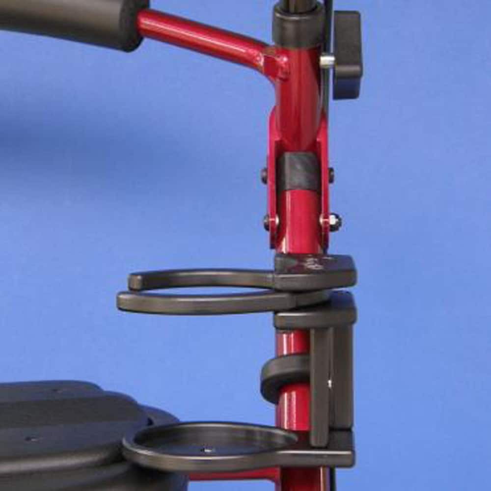 Made of high-density polyethylene, this cup holder attaches to 1" diameter angled or straight tubing of a standard walker or rollator. The cup holder adjusts to four different sizes, so you can fit both large and small drinks without a problem!